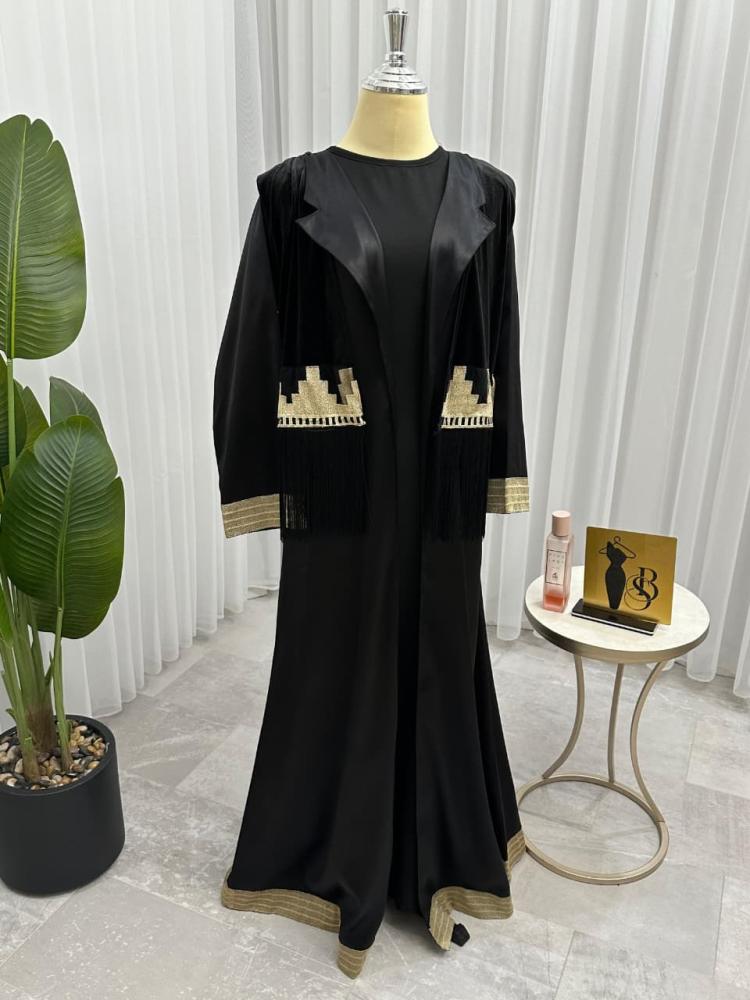 جلابيه يوم التاسيس ثلاث قطع كريب بشت تفته صدريه مخمل كمبيوتر مع هدب BS