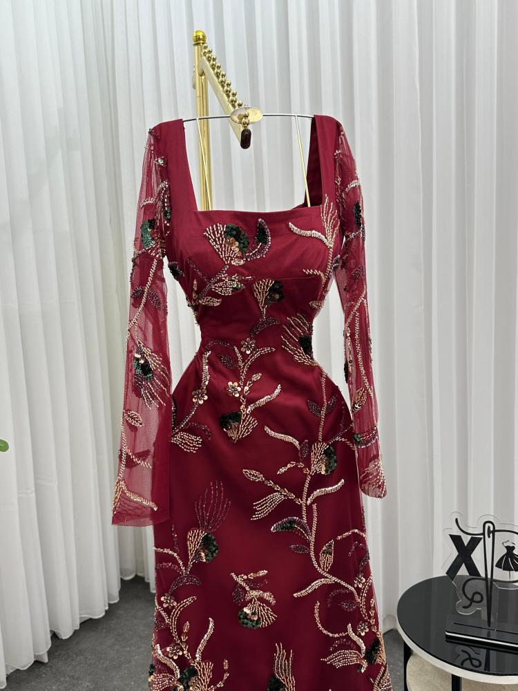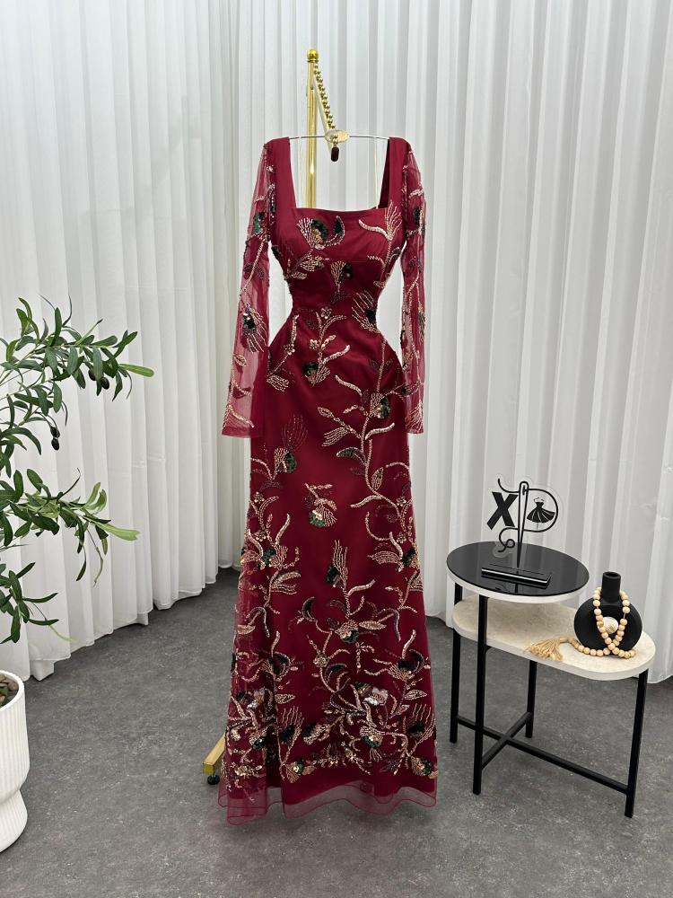 فستان سهرة اللون عودي نوع القماش قطعه تل شك من متجر جوهره X
