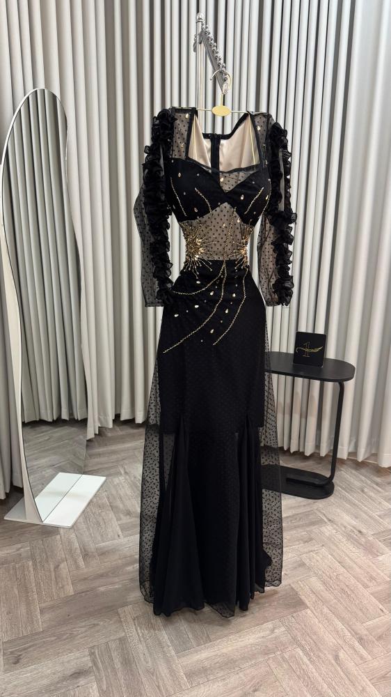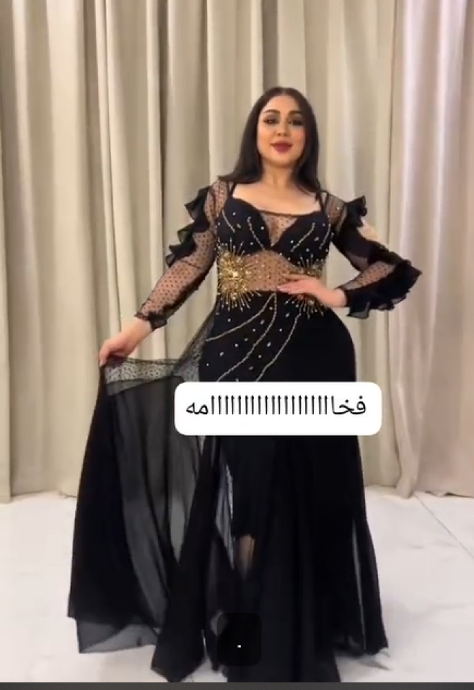 فستان سهره اللون اسود تول مشجر مع شيفون من متجر جوهره NO