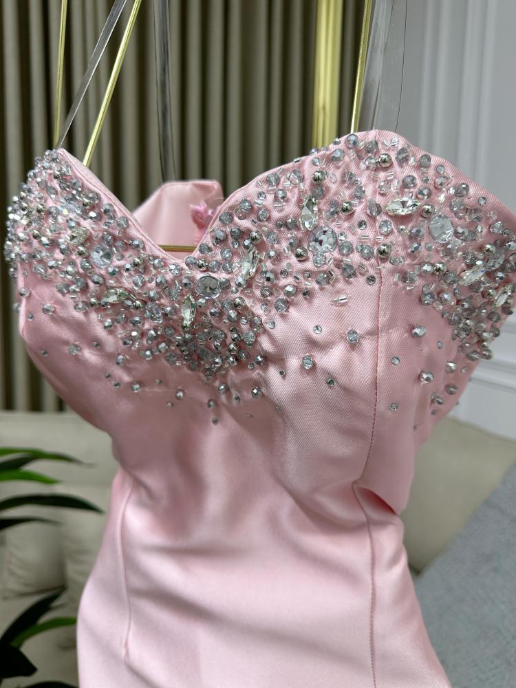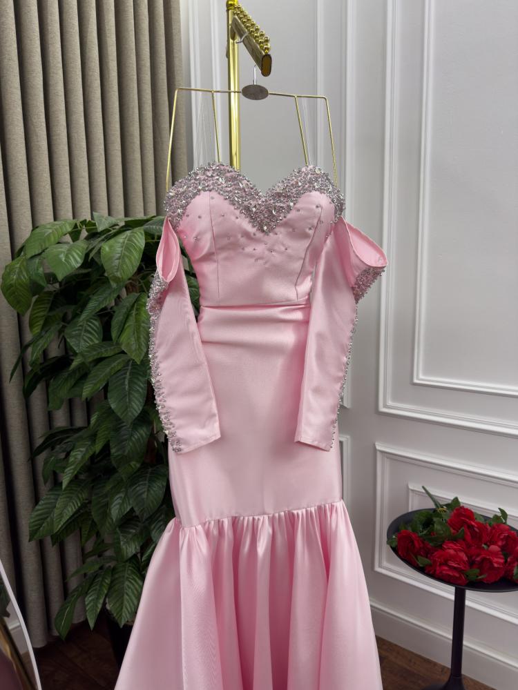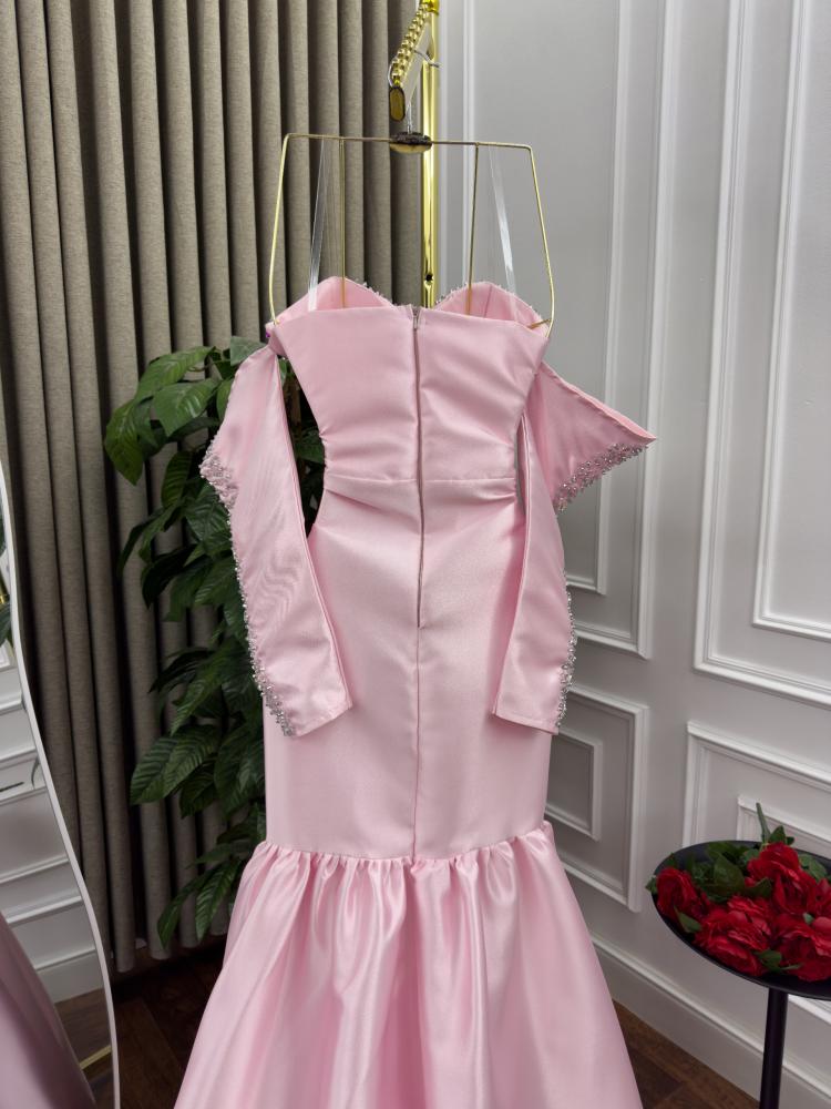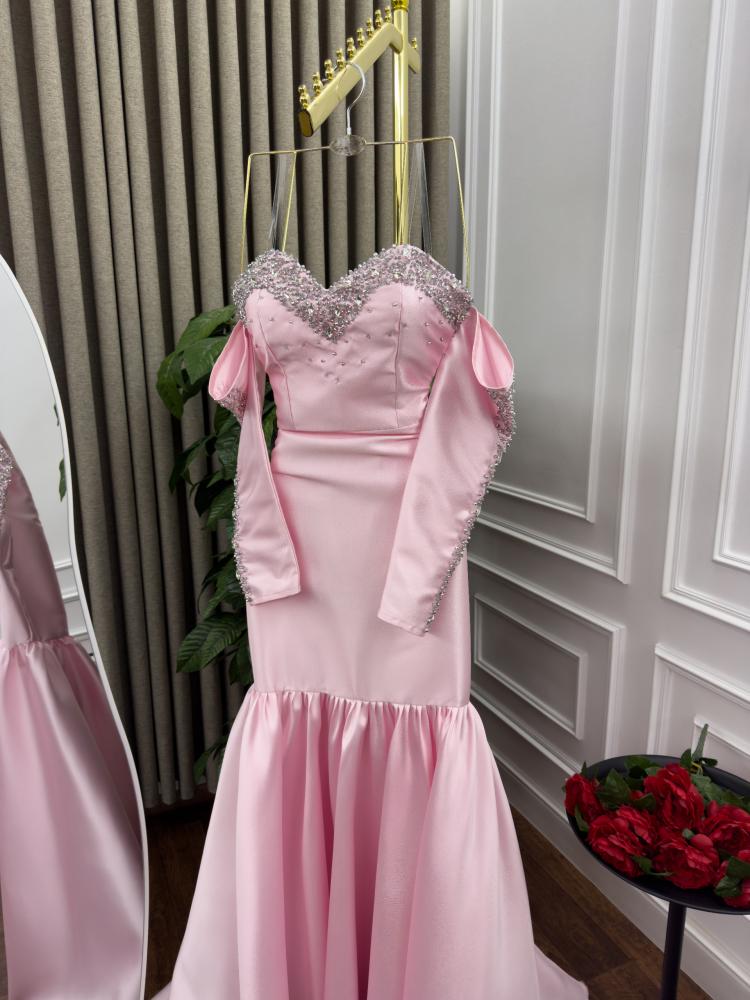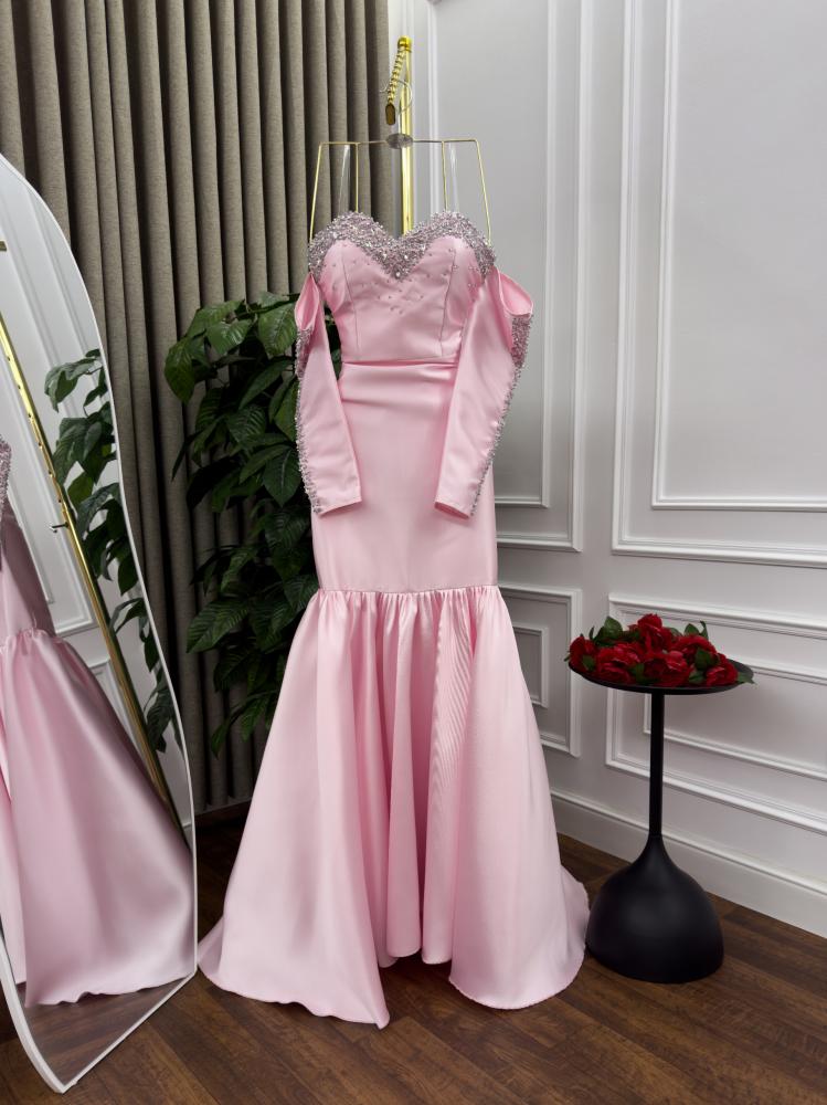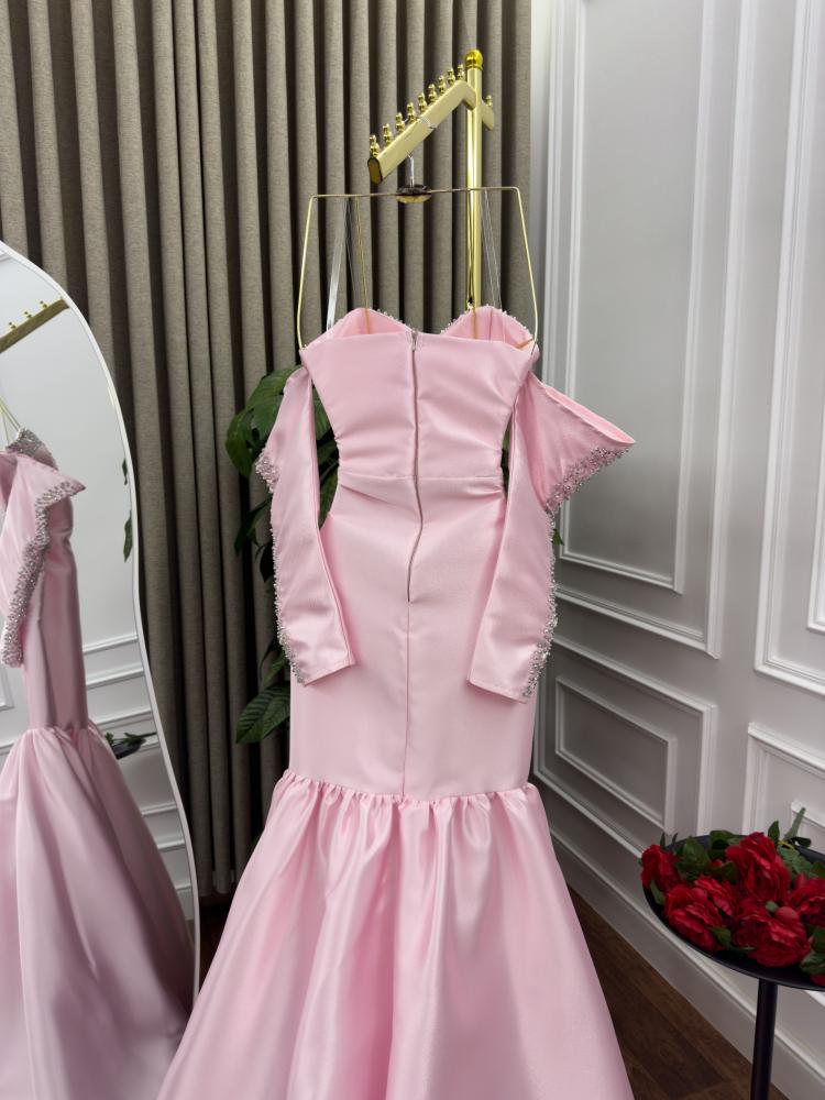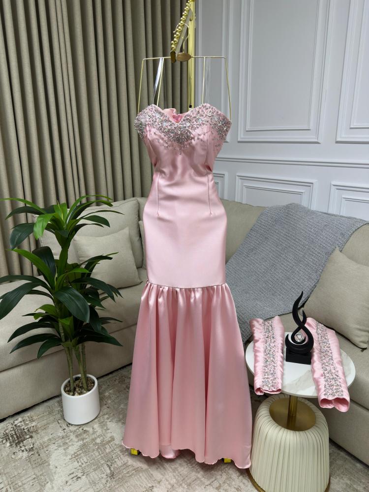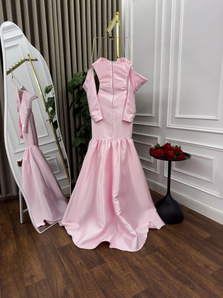 فستان سهره اللون زهري الخامه ميكادو تطريز يدوي MN