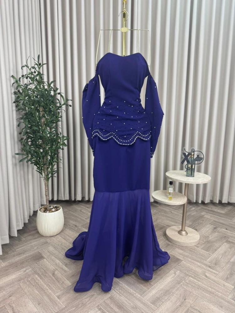 فستان سهره اللون كحلي باربي على شيفون من متجر جوهره X