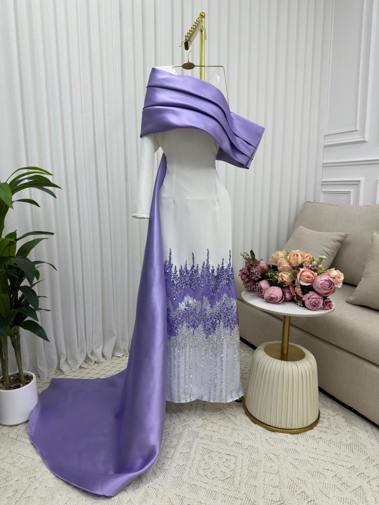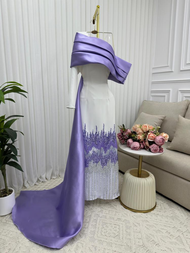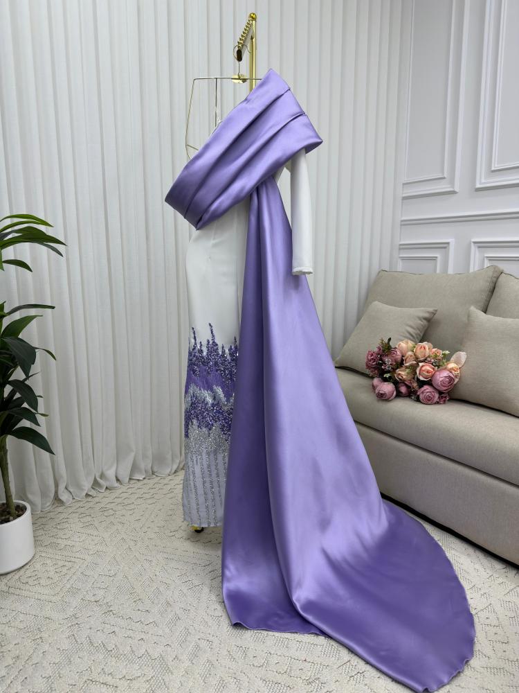 فستان سهره موف و سكري الخامه :ميكادو رااقي الاصلي قماش دبل باربي راااقي الاصلي قماش ناعم صيفي مريح باللبس قماش سهره راااقي من متجر جوهره AT