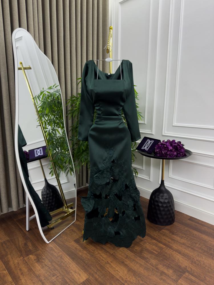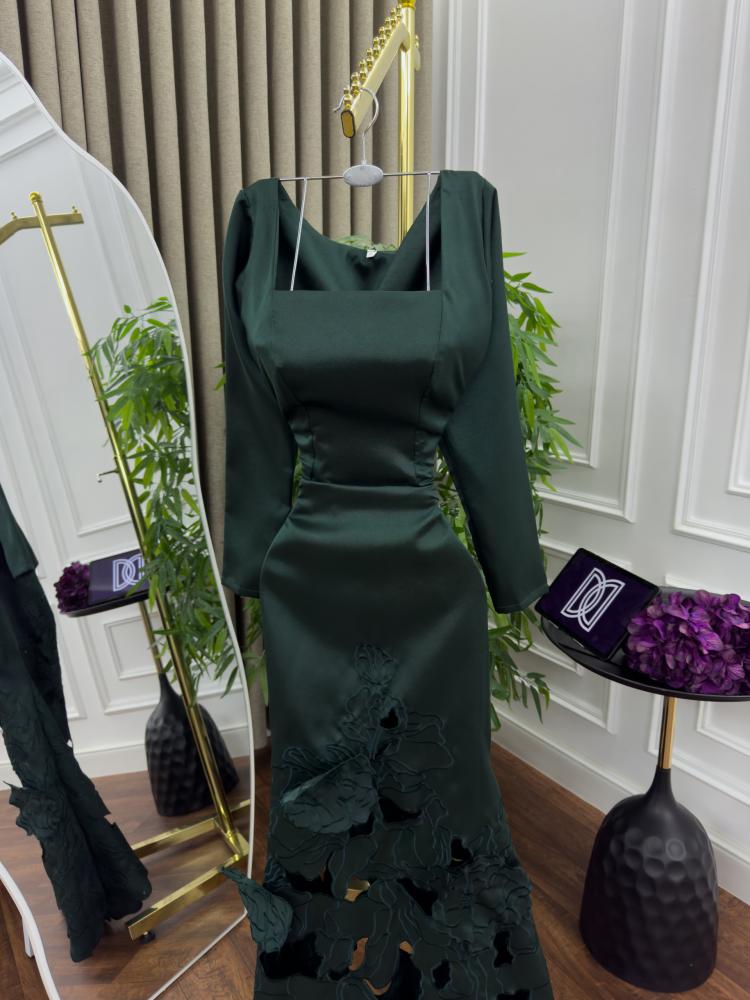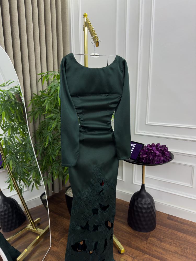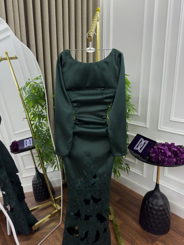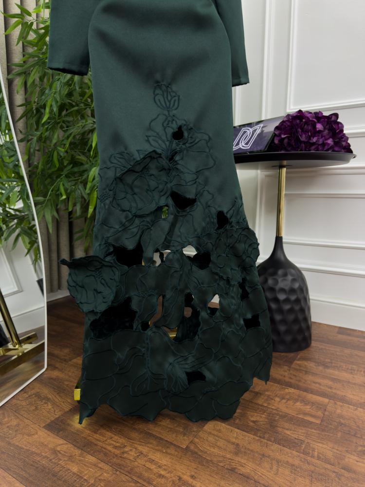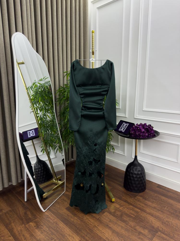 فستان سهره اللون اخضر ميكادو تطريز كمبيوتر وليزر من متجر جوهره D