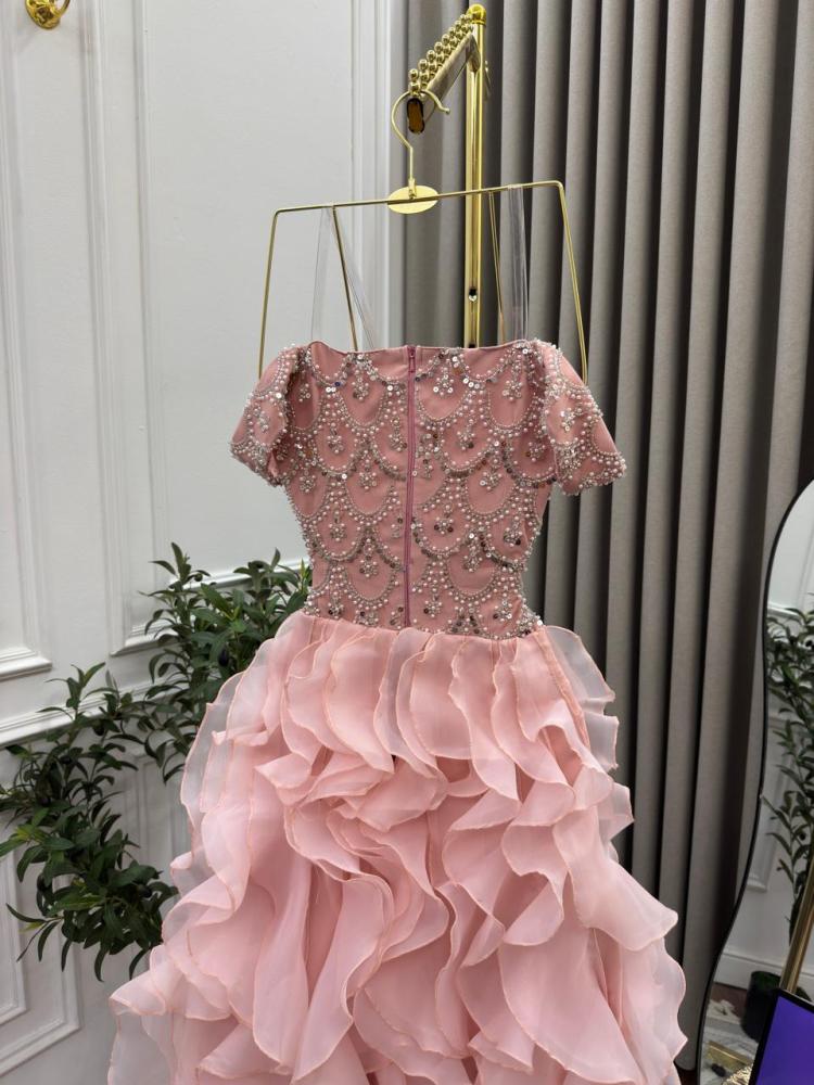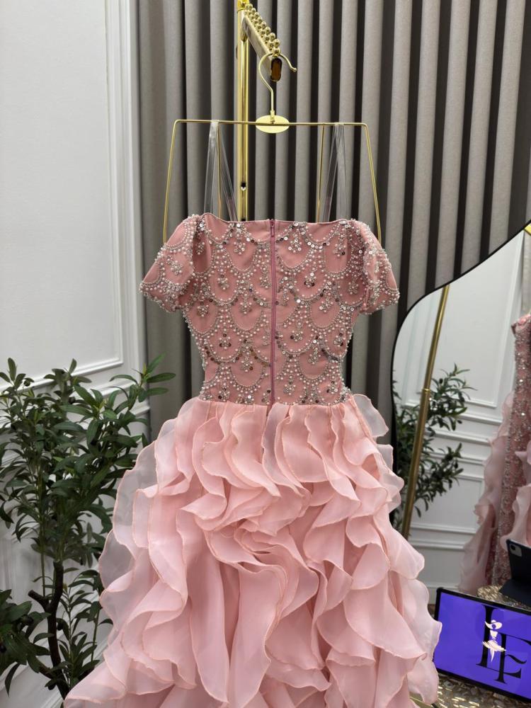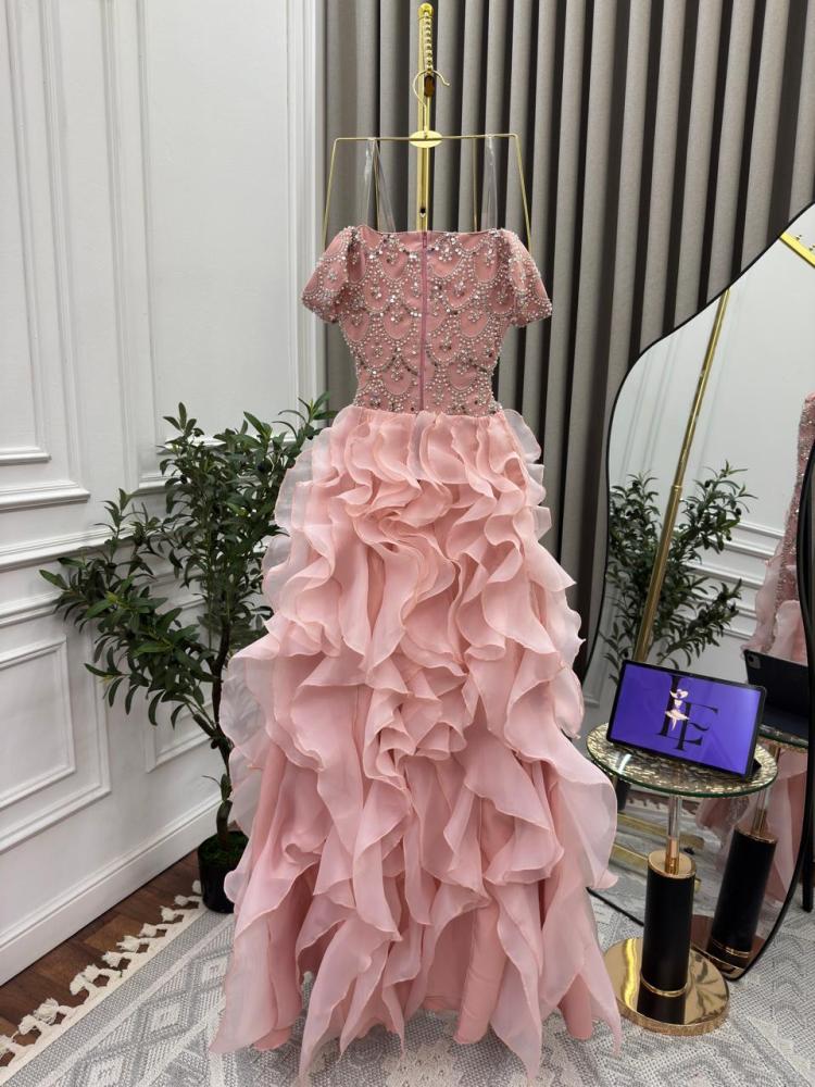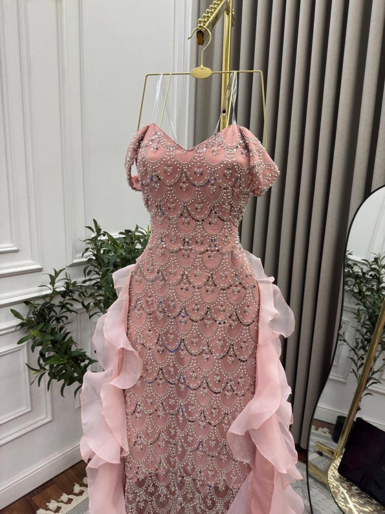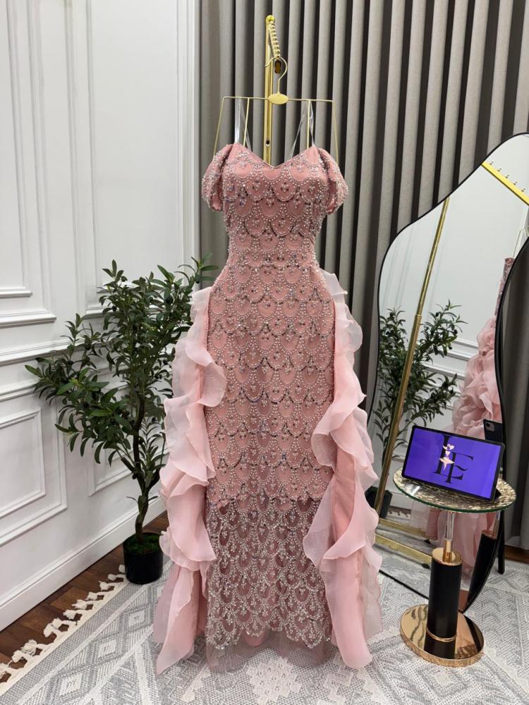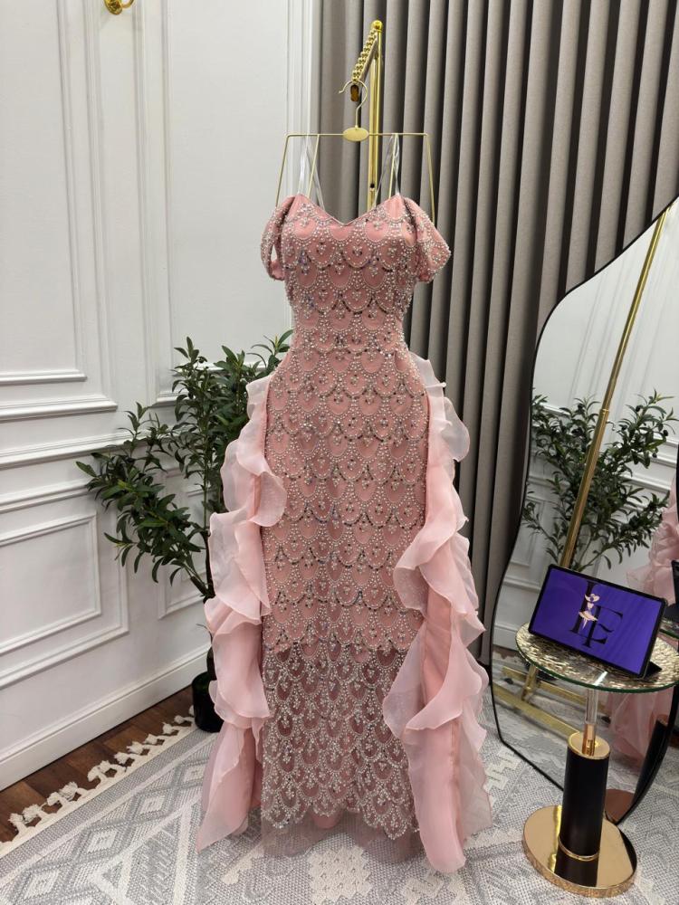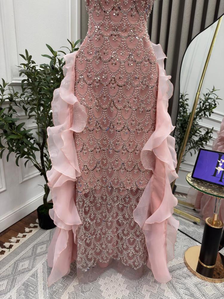 فستان سهره اللون لحمي كلف سهره طرحه ذيل جازار من متجر جوهره LF