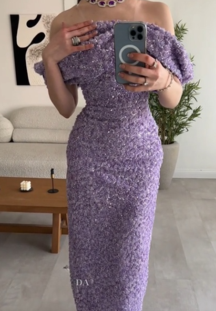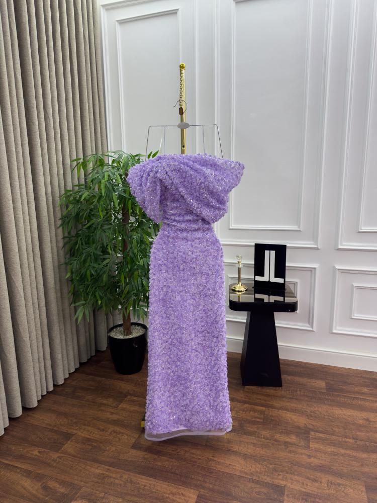 فستان سهره اللون موف قماش موردبطانه باربي من متجر جوهره LA