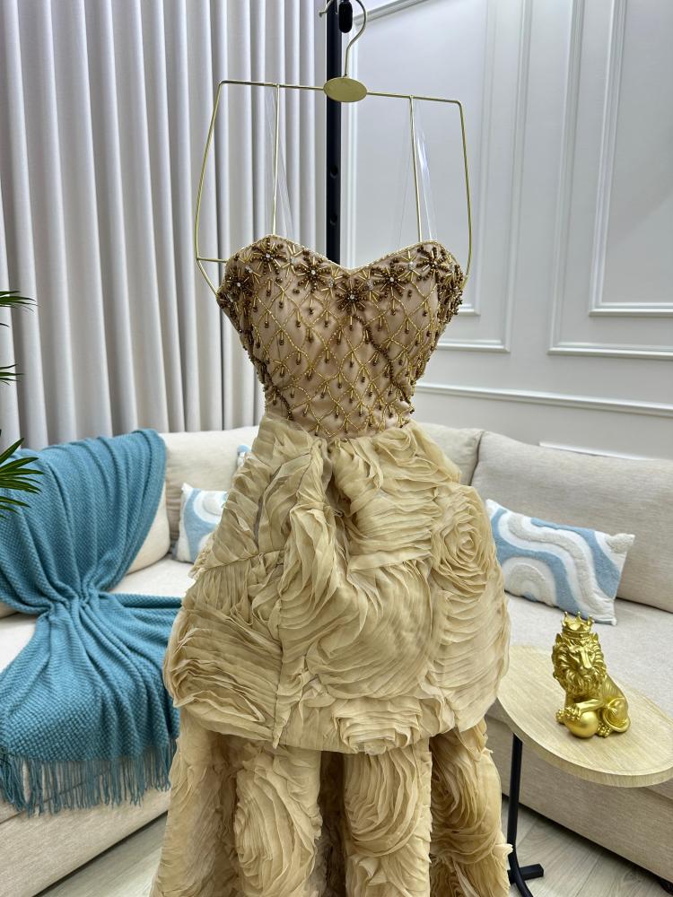فستان سهره اللون ذهبي القماش صدريه باربي بطريز يدوي راقي & قماش ورود درجه اولى من متجر جوهره TR