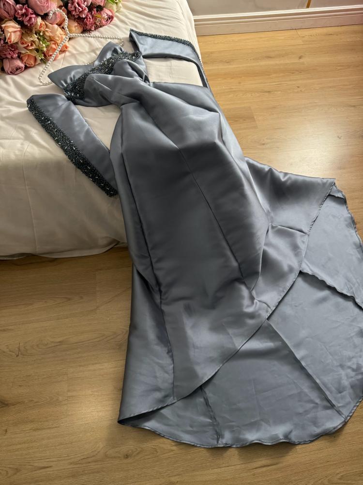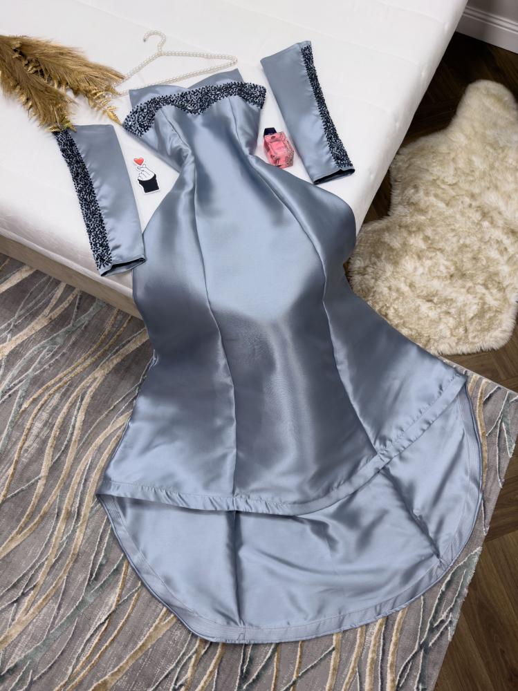 فستان سهره الالوان لحمي و سماوي و رصاصي الخامه ميكادو EF