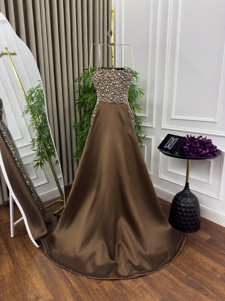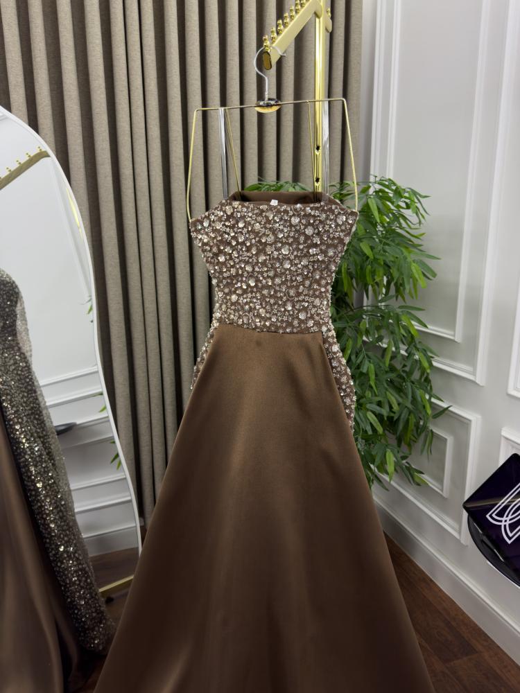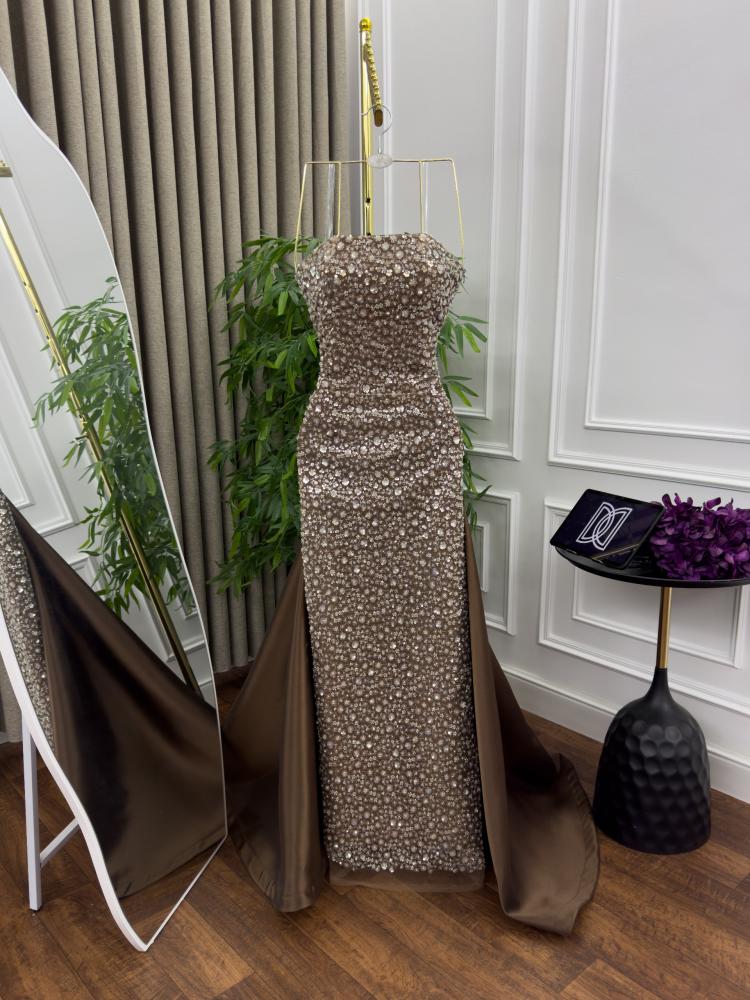 فستان فخم يكادو ذيل تطريز كلفه اللون بني