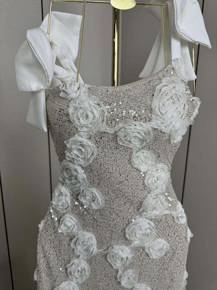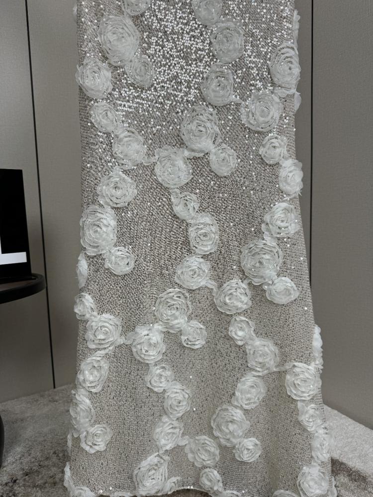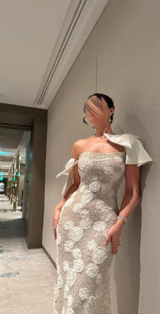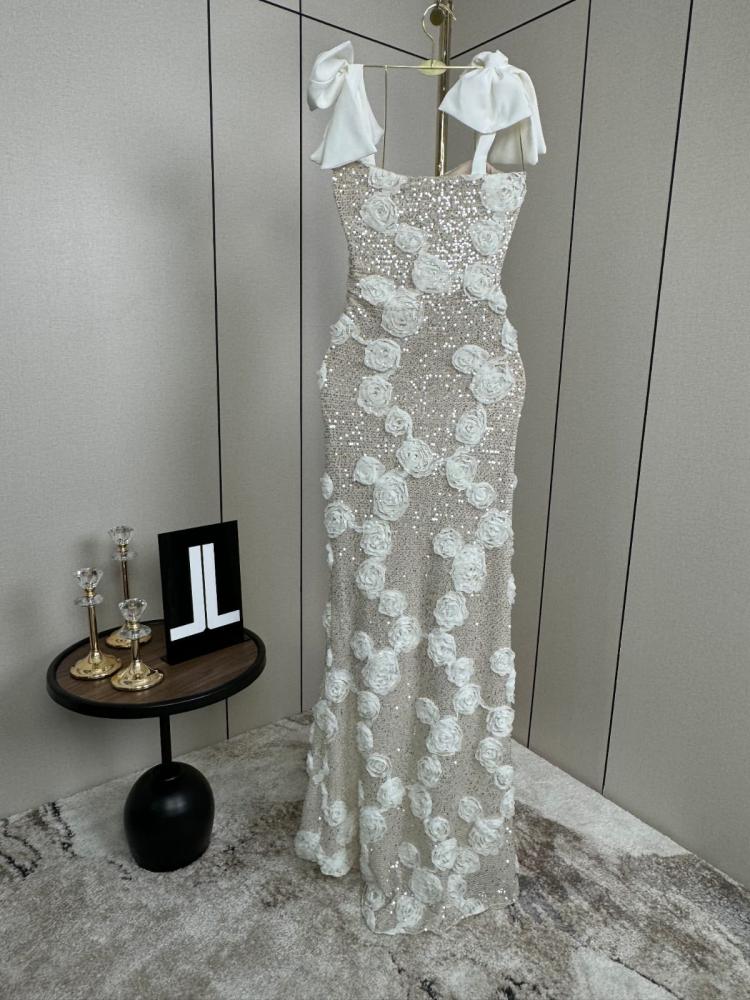 فستان سهره اللون ابيض القماش ترتر ورود LA