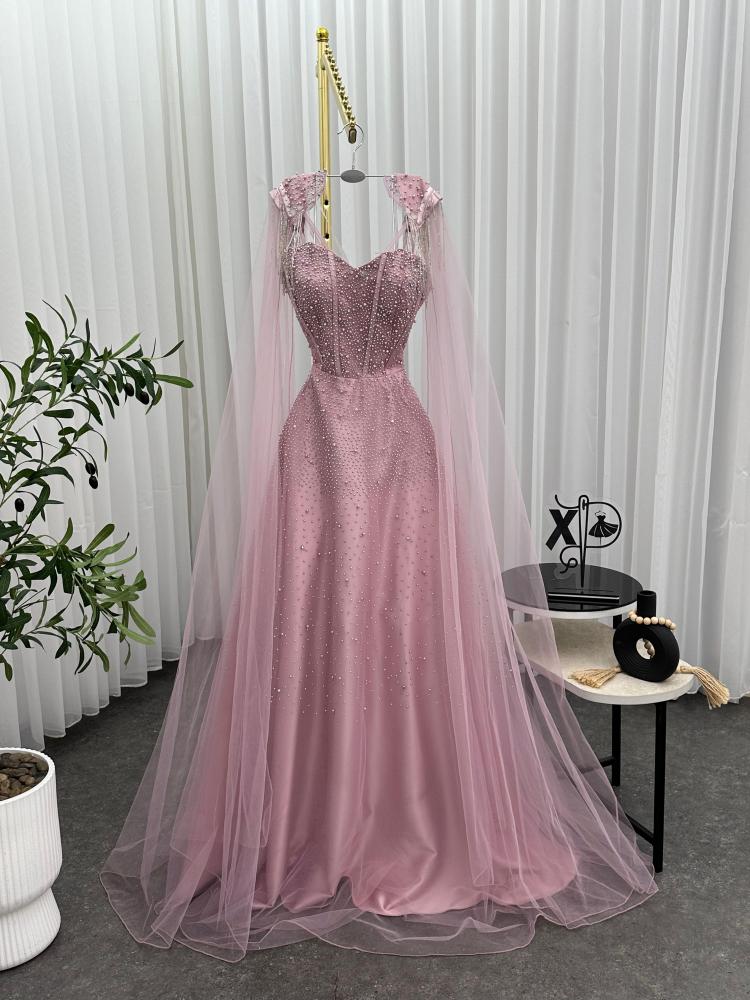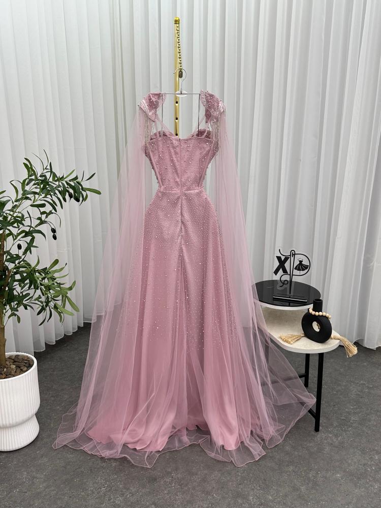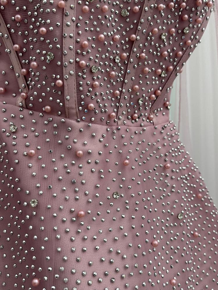 فستان سهره اللون وردي نوع القماش تل على بطانه تفته من متجر جوهره X