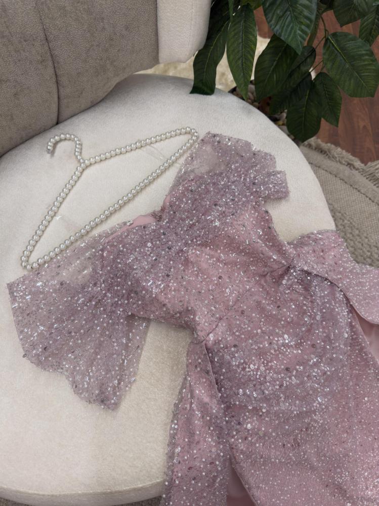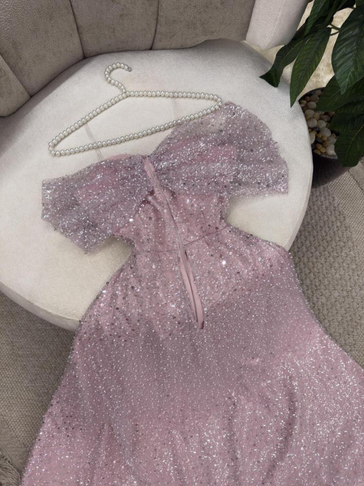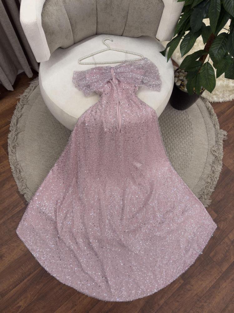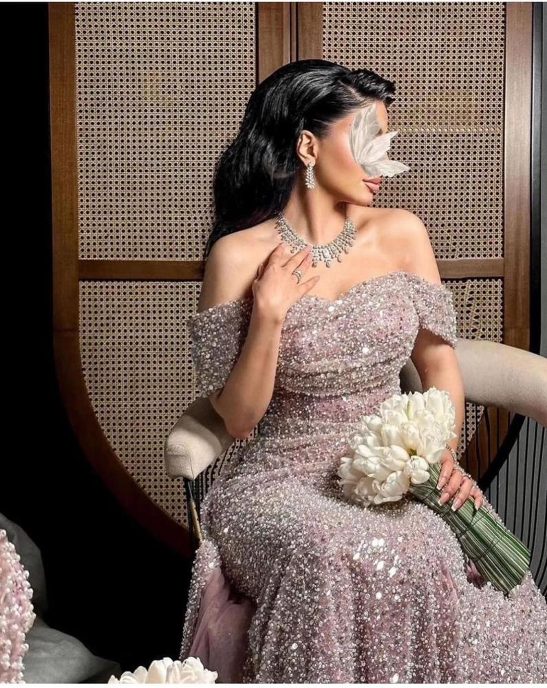 التصميم : فستان سهره اوف شولدر من التل مصمم ضيق و قصة ذيل واسعه من الخلف خط العنق :اوف شولدراللون : ورديالتمدد: غير قابل للتمددالخامه :تلالمناسبه : سهره -خطوبهالمقاسات: S-M-L-XL-XXL-XXXL