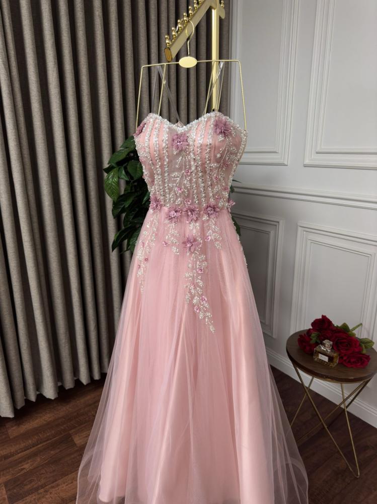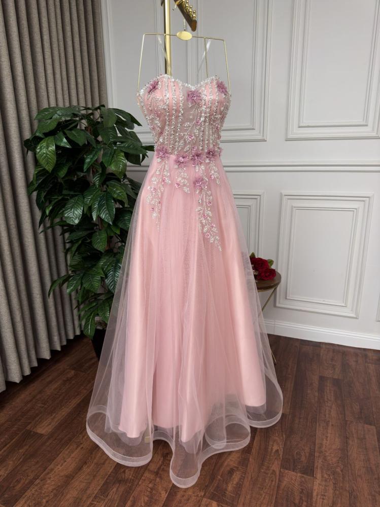 فستان سهره اللون زهري الخامه توول ناعم بطانه تفته سيلا JR