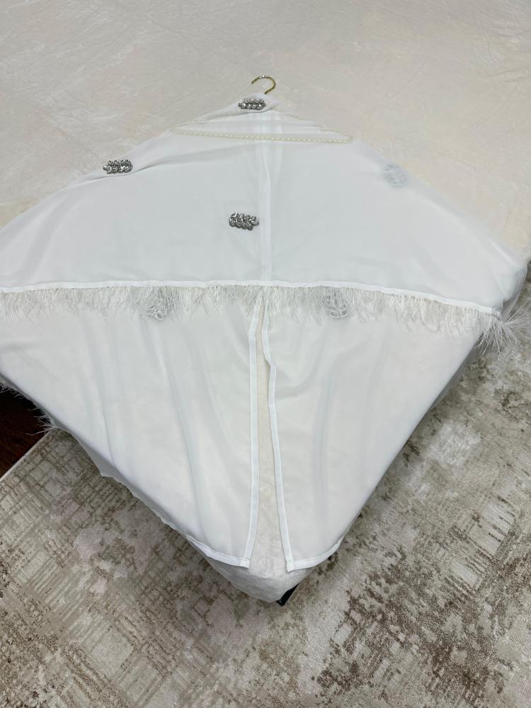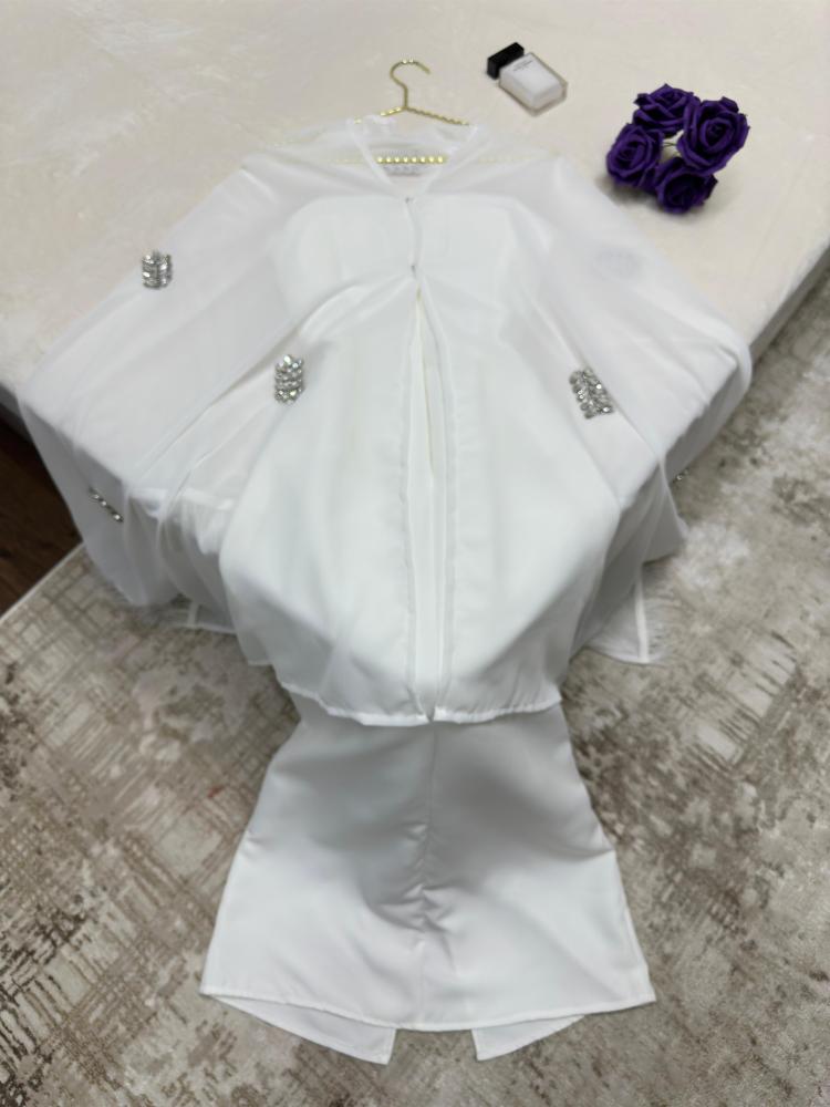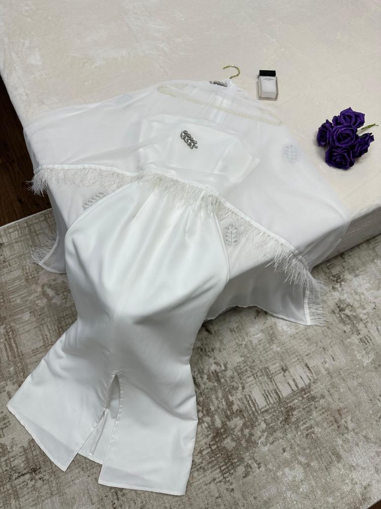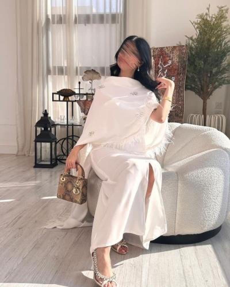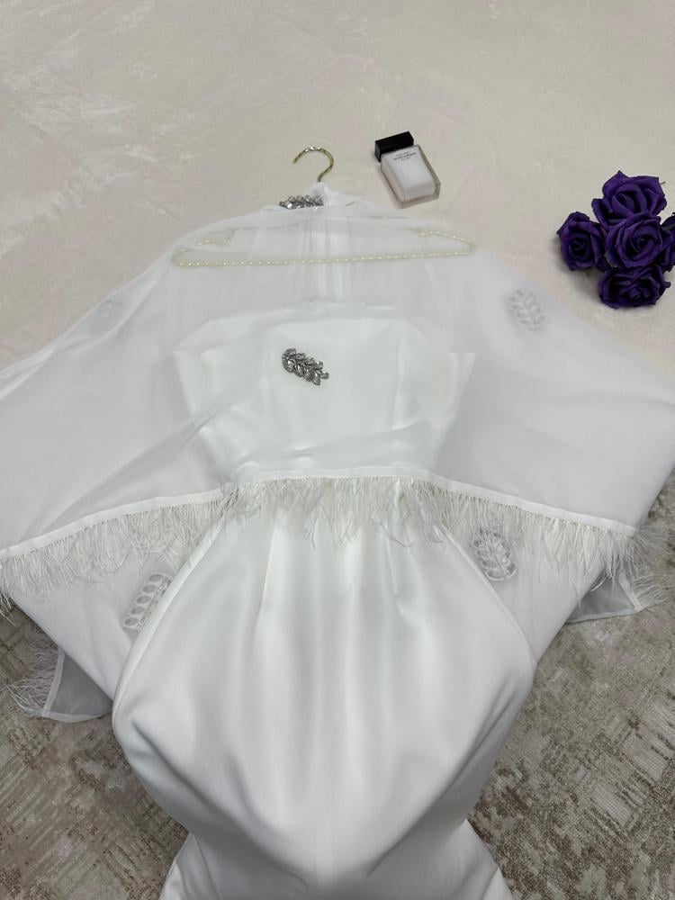 فستان ابيض ناعم مع شال شفاف من متجر جوهره