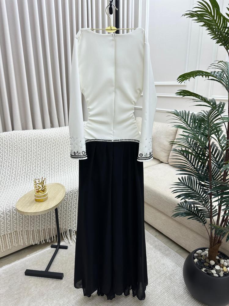 فستان ابيض و اسود مطرز يدوي الخامه باربي و شيفون من متجر جوهره