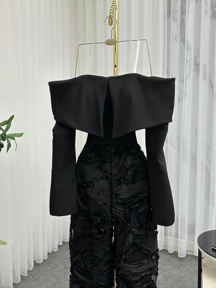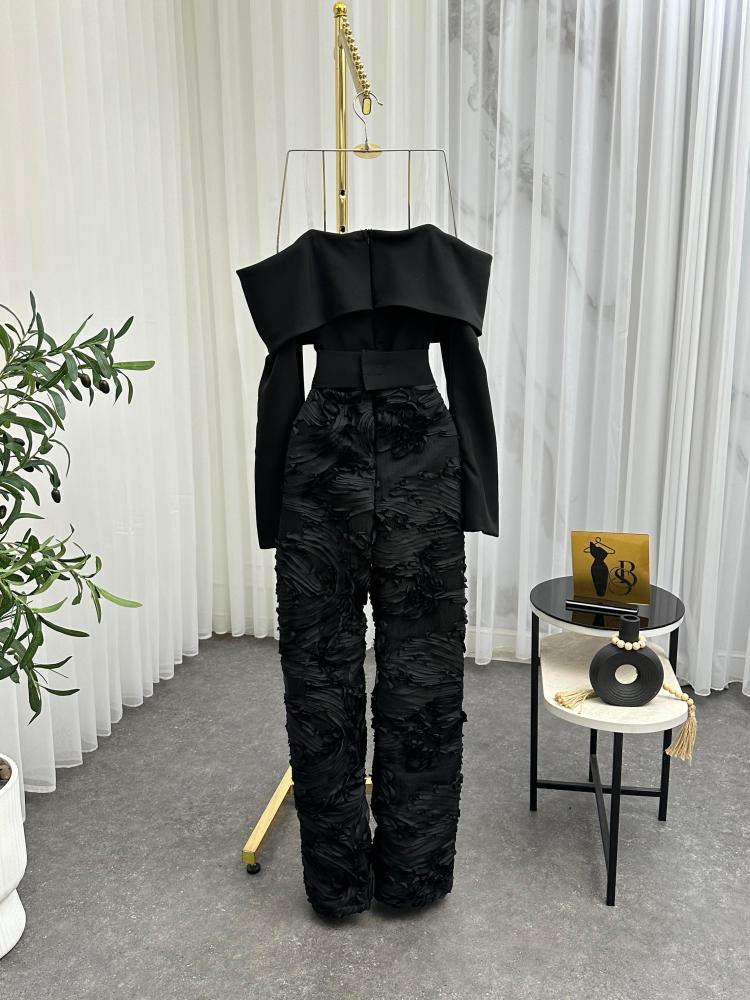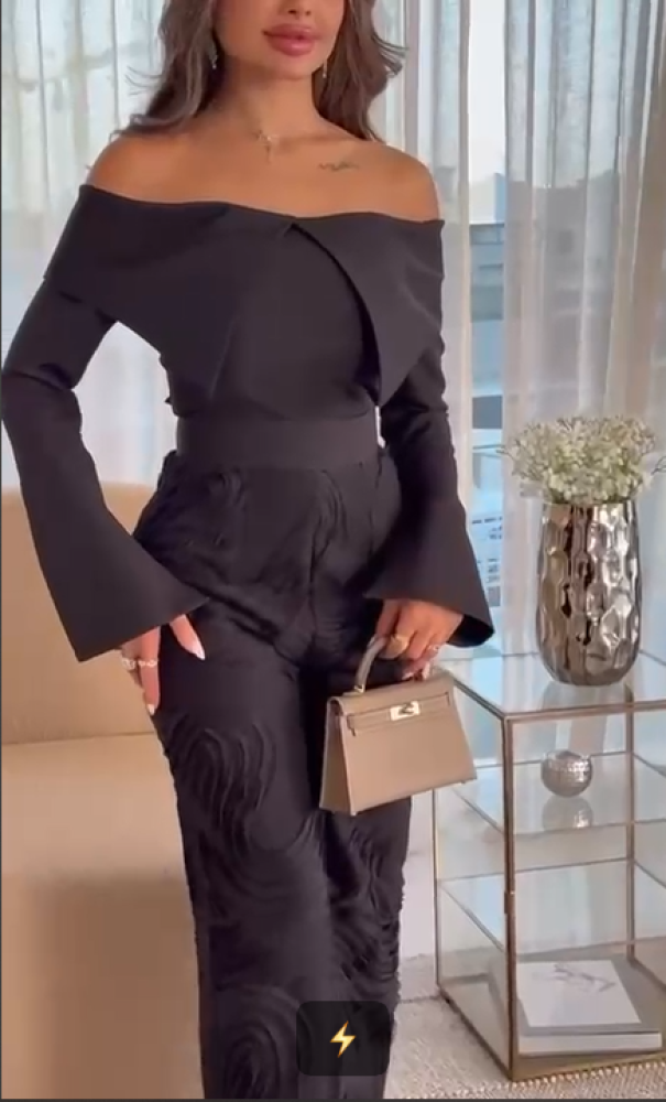جمبسوت انيق اللون اسود الخامه كريب دانتيل BS