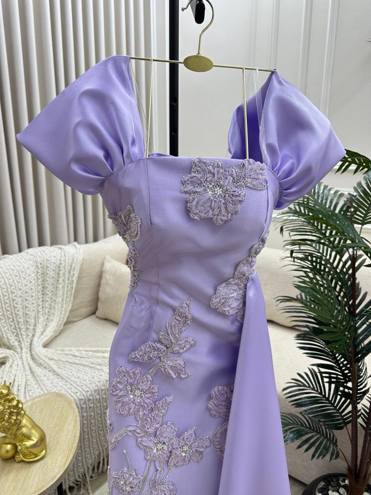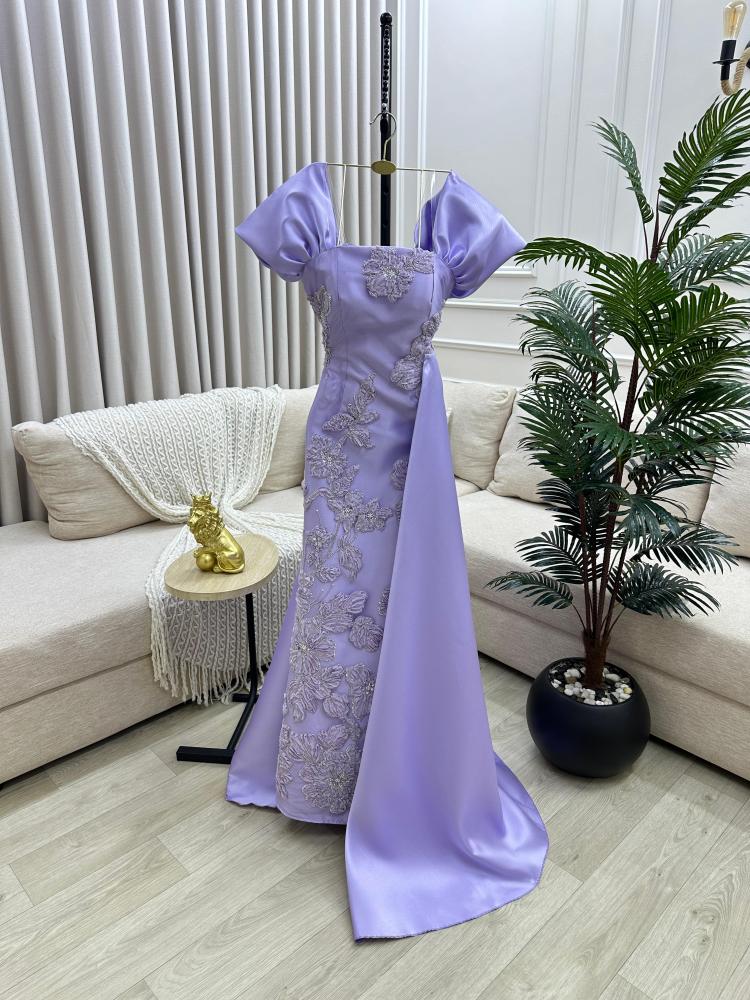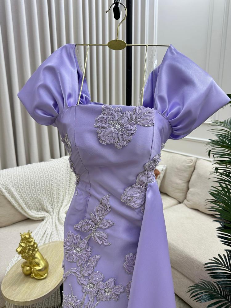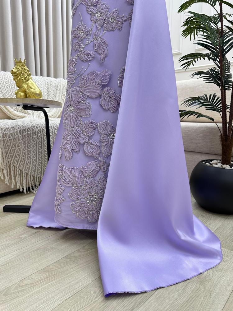فستان سهره اللون موف ميكادوا اصلي درجه اولى قماش شك سهره مطرز ورد راقي TR