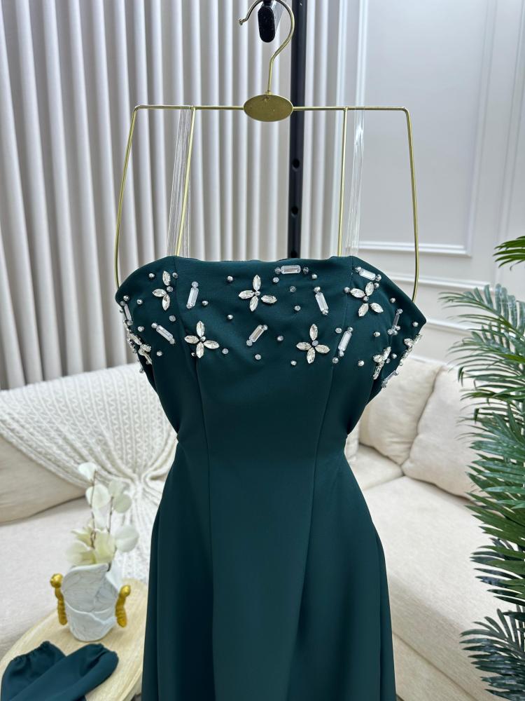 فستان سهره اخضر القماش اربي طريز يدوي راقي FH