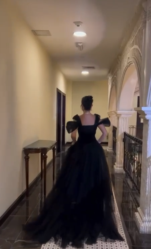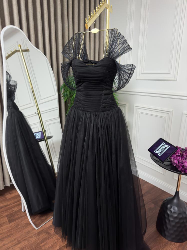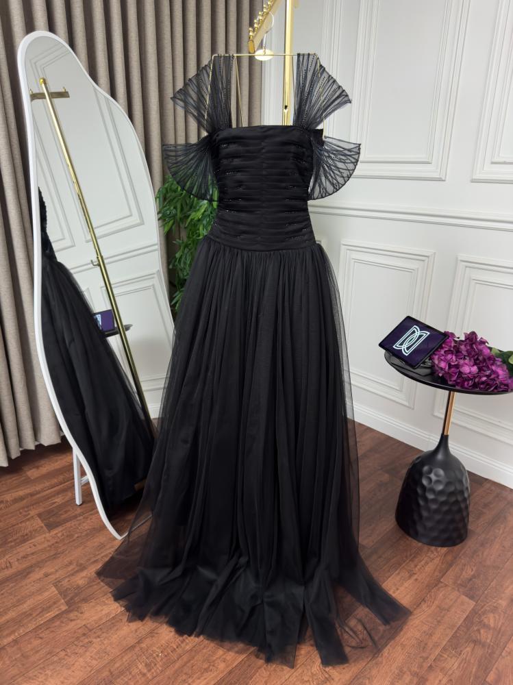 فستان سهرة اللون اسود تل وترفصوص كلوش من متجر جوهره D