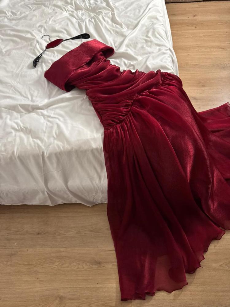 فستان سهره اللون عنابي كرنكل دبل كلوش مبطن من متجر جوهره AT
