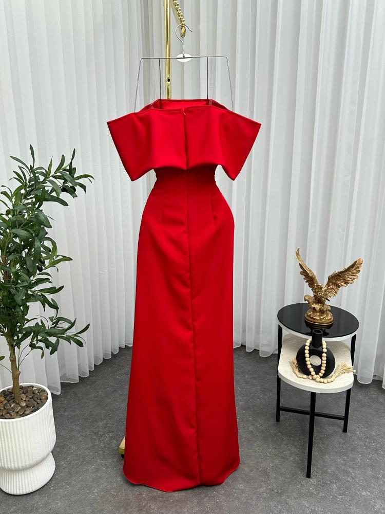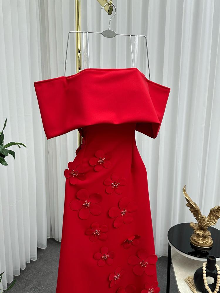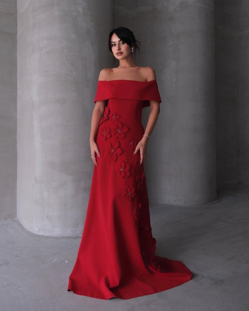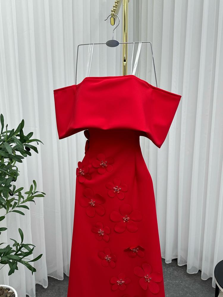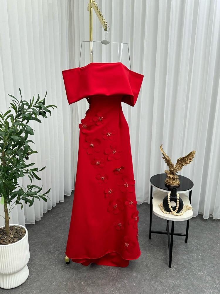 فستان سهره اللون ااحمر خامه باربي ورد ليزر فصوص QN