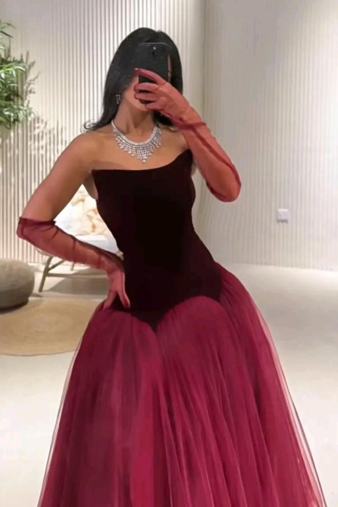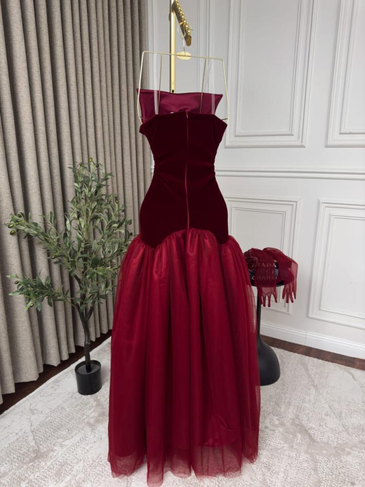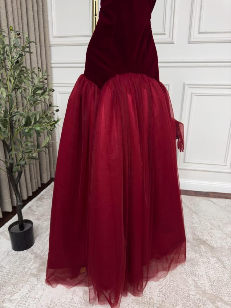 فستان اوف شولدر مع قفازات جوخ اصلي درجه اولى بطبقات تل من جوهره