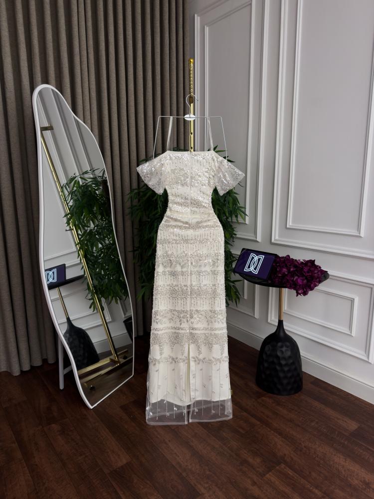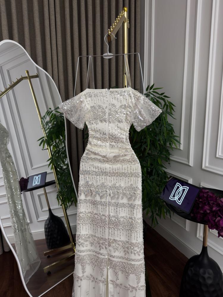 فستان سهره اللون ابيض تل كلفه تطريز خرز من متجر جوهره D