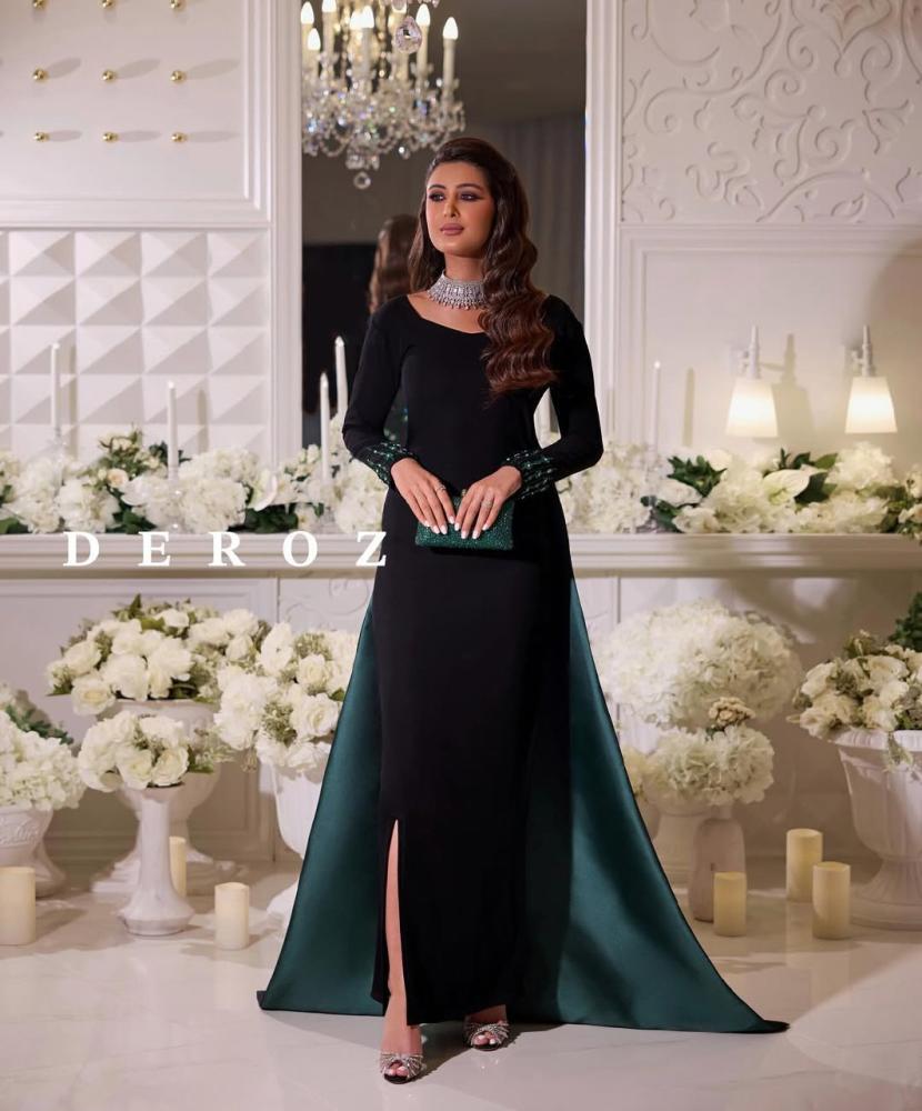 الخامه: ليكرا استرتش + ذيل ميكادو على تطريز يدوي قابل للتمددالمقاسات: S M L XL XXL XXXL الألوان : اسود والذيل اخضر