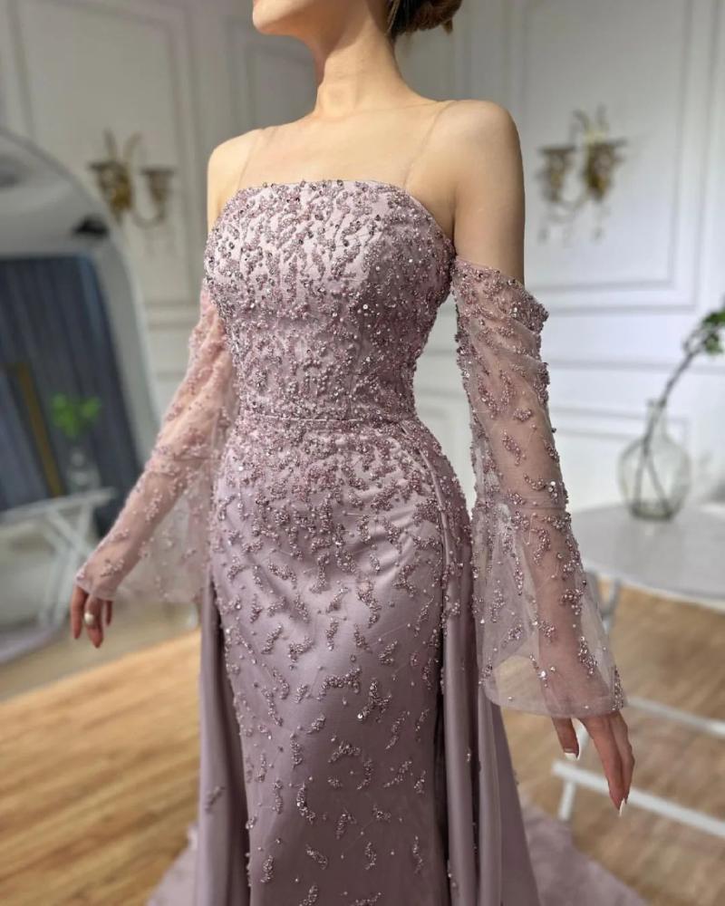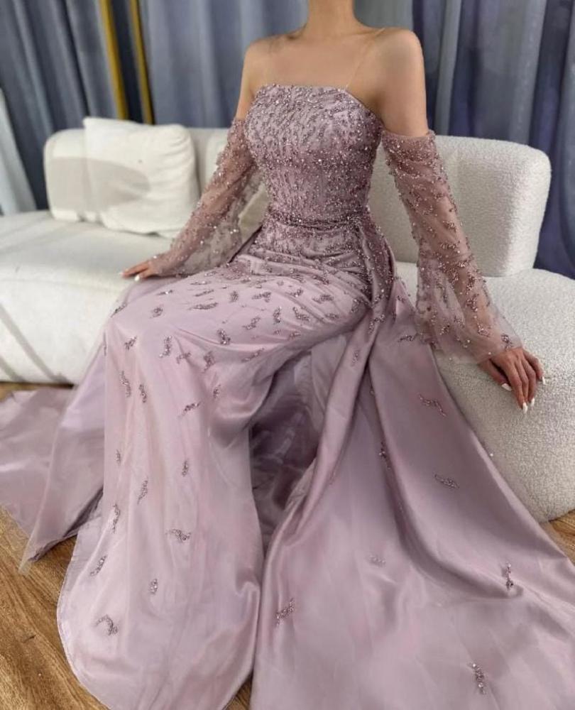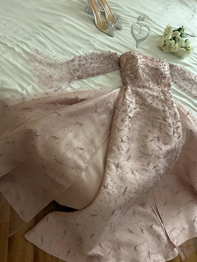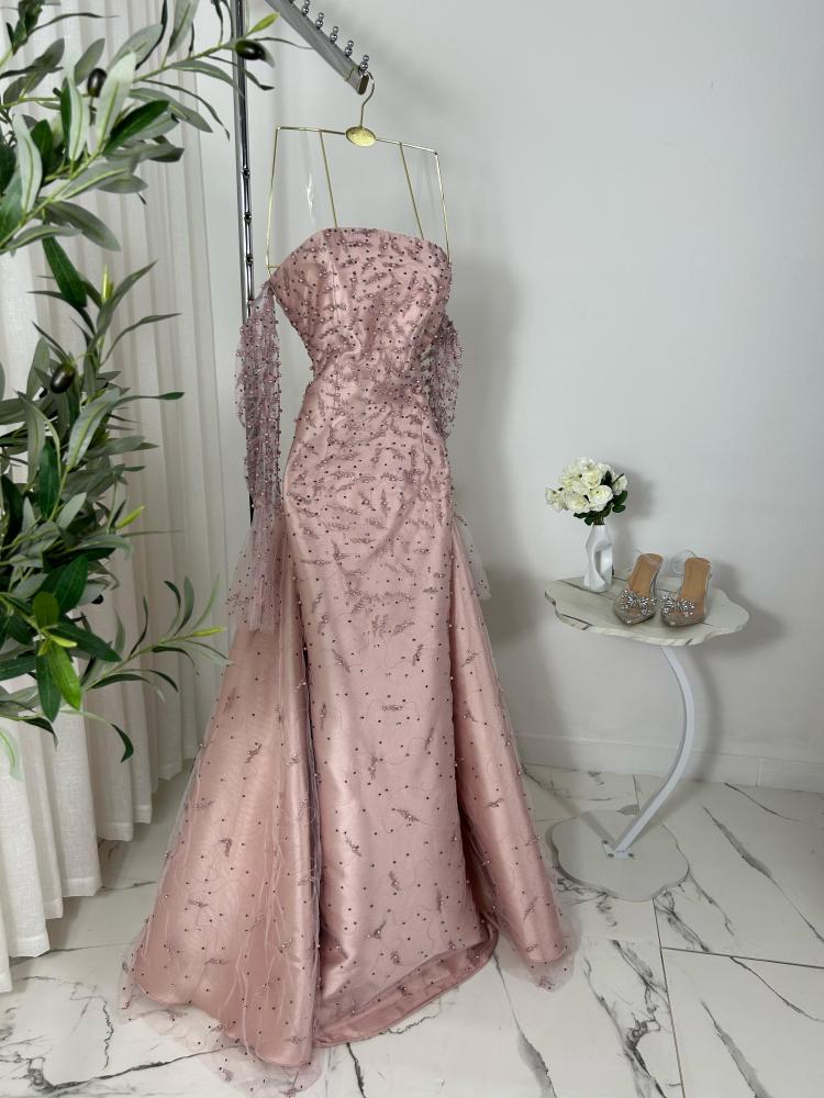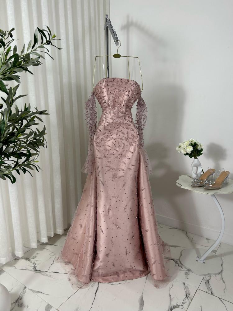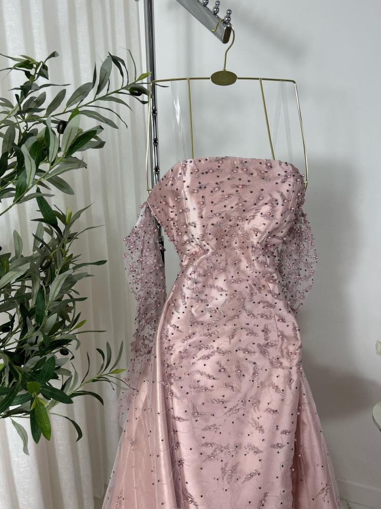 فستان لحمي خامه ميكادو وتل مطرز كبيوتر ولول من متجر جوهره MN