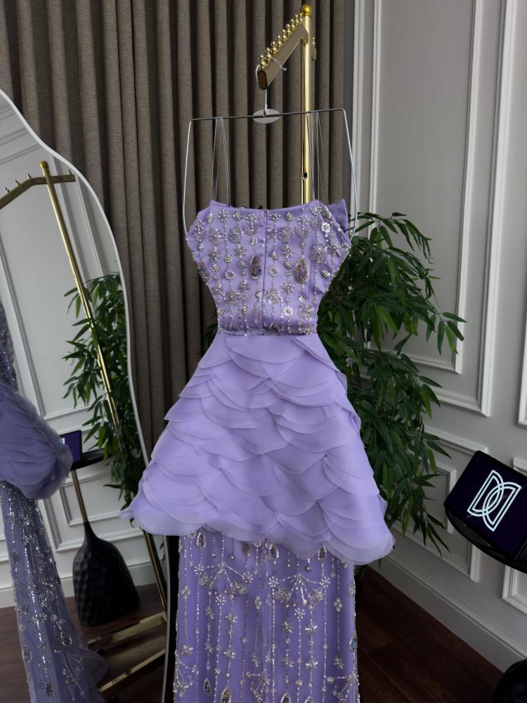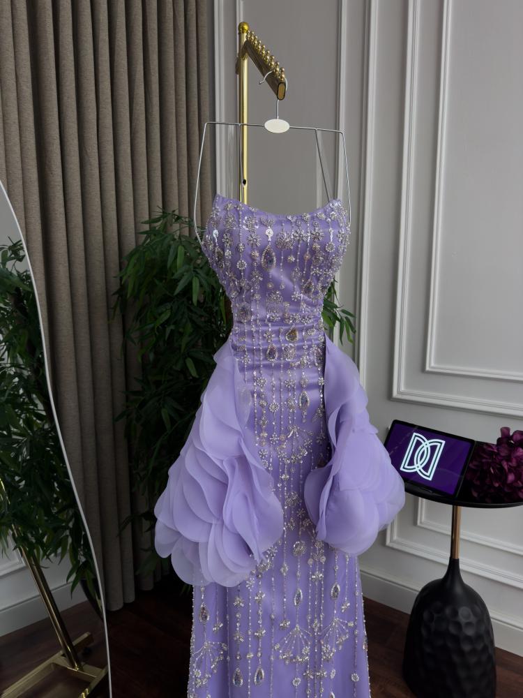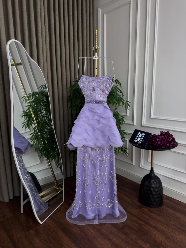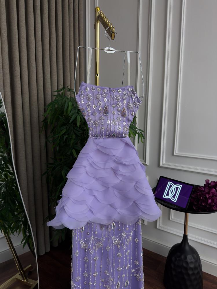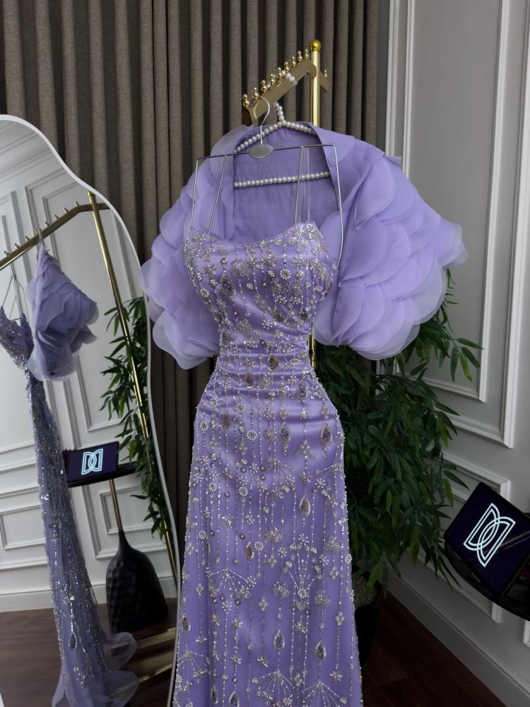 فستان سهره اللون موف كلفه تل تطريز خرز وجاكيت اورجنزا ليزر من متجر جوهره D