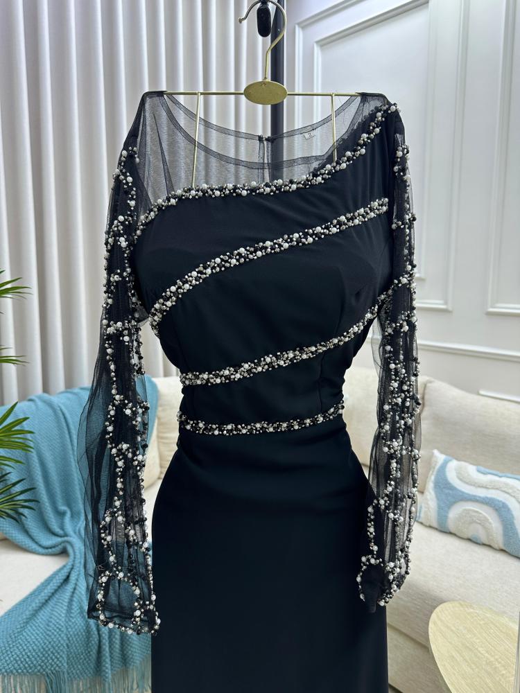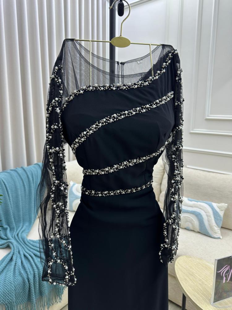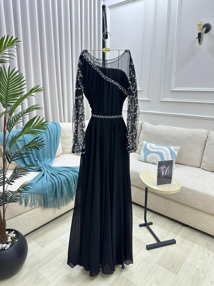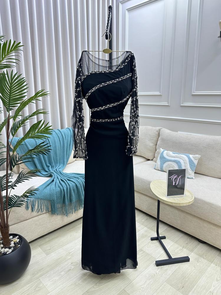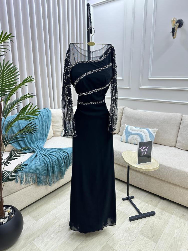 فستان سهره اللون اسود الخامه جورجيت تطريز يدوي ولول من متجر جوهره FD MA