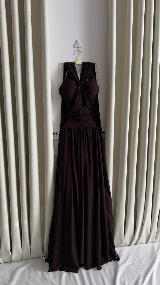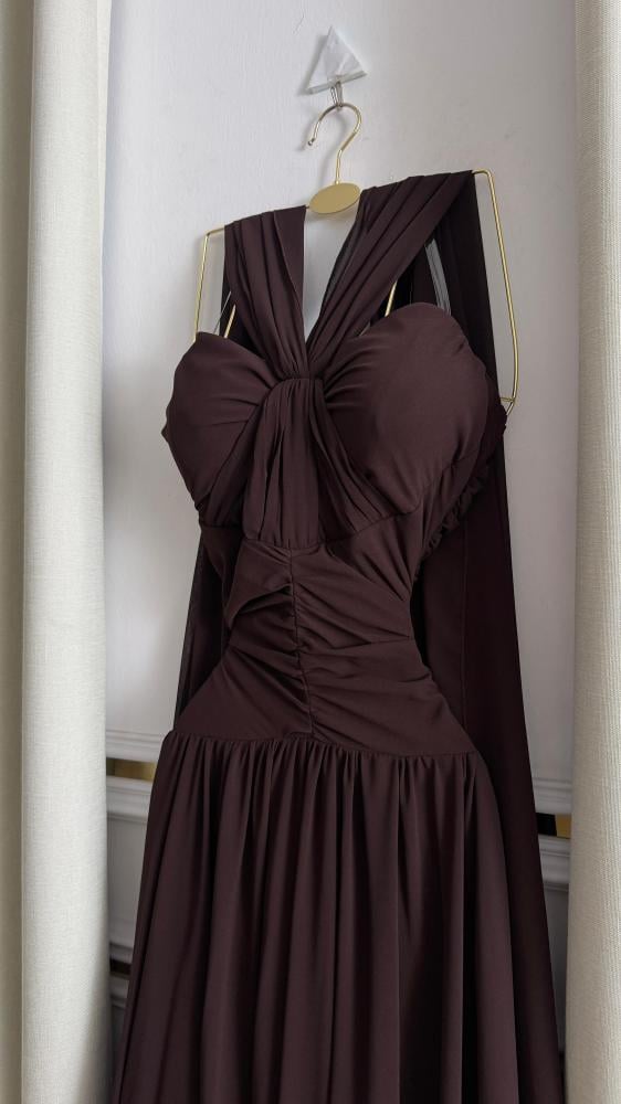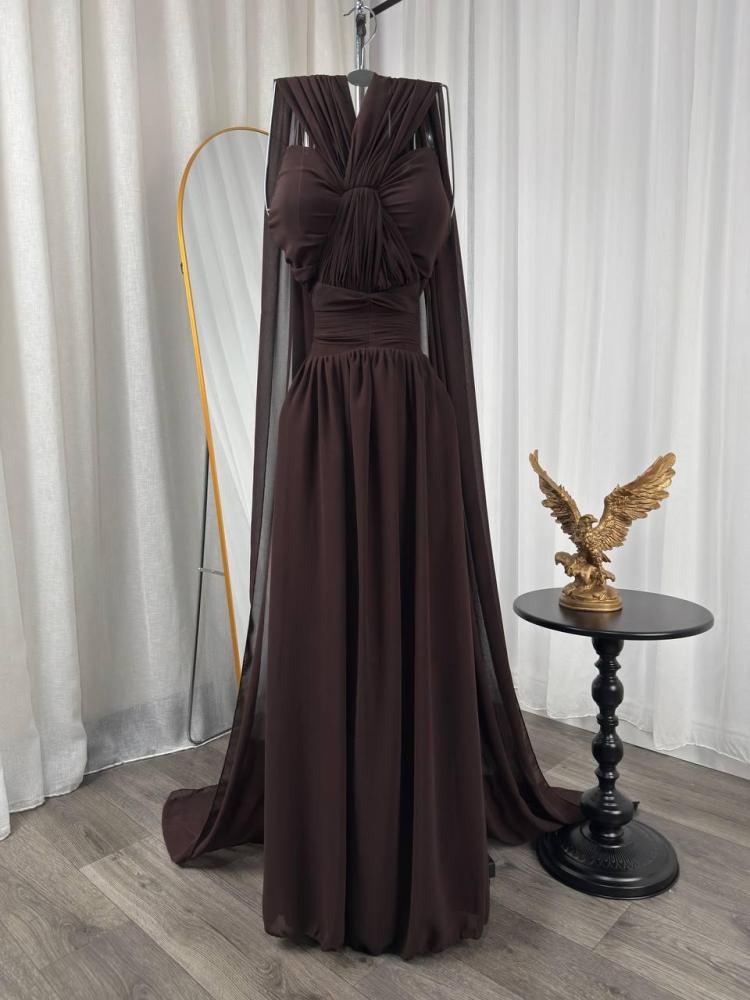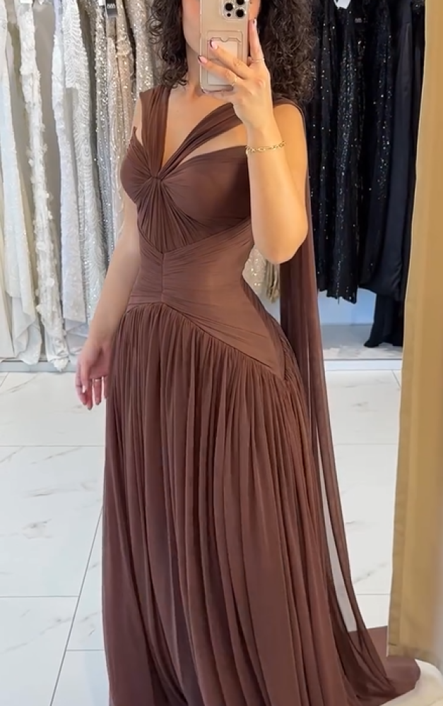 فستان سهره اللون بني خامه شيفون من متجر جوهره MN QN
