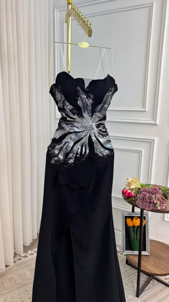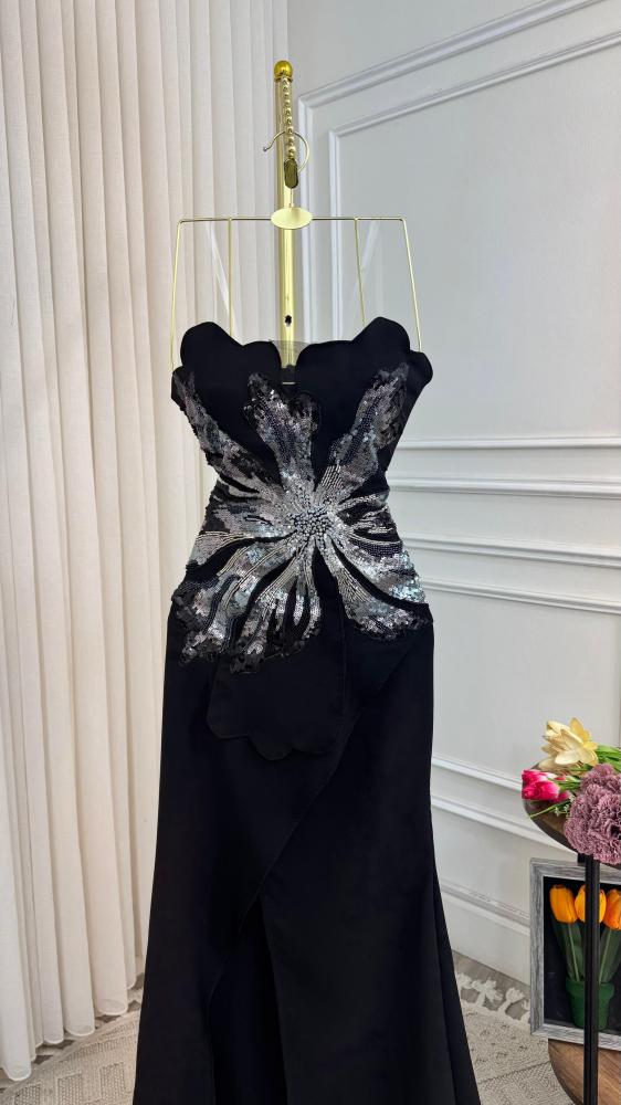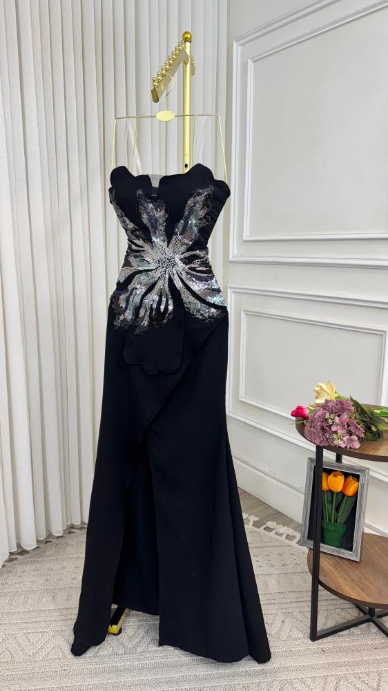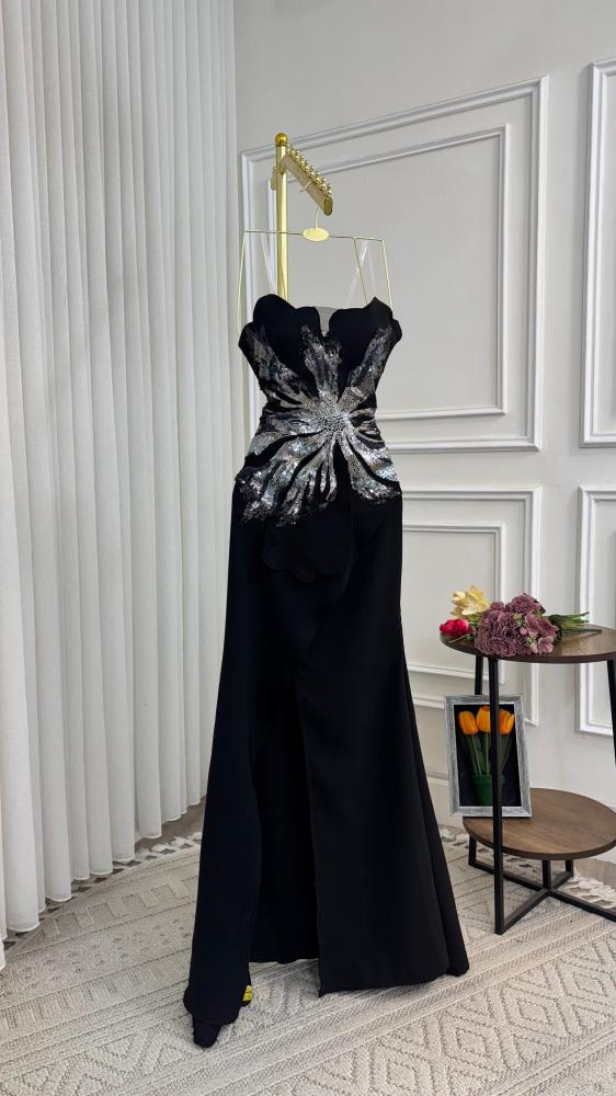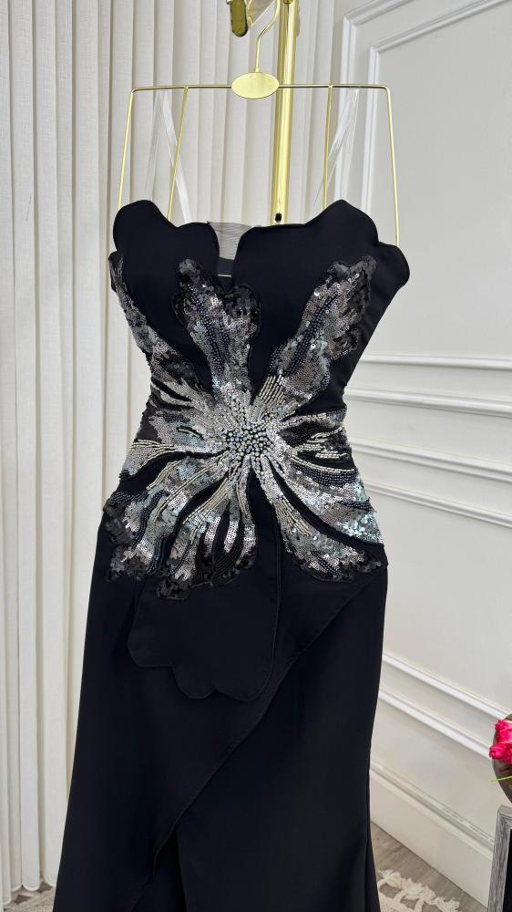 فستان سهره اللون اسود باربي كلفه كرستال وترتر وخرز من متجر جوهره FD