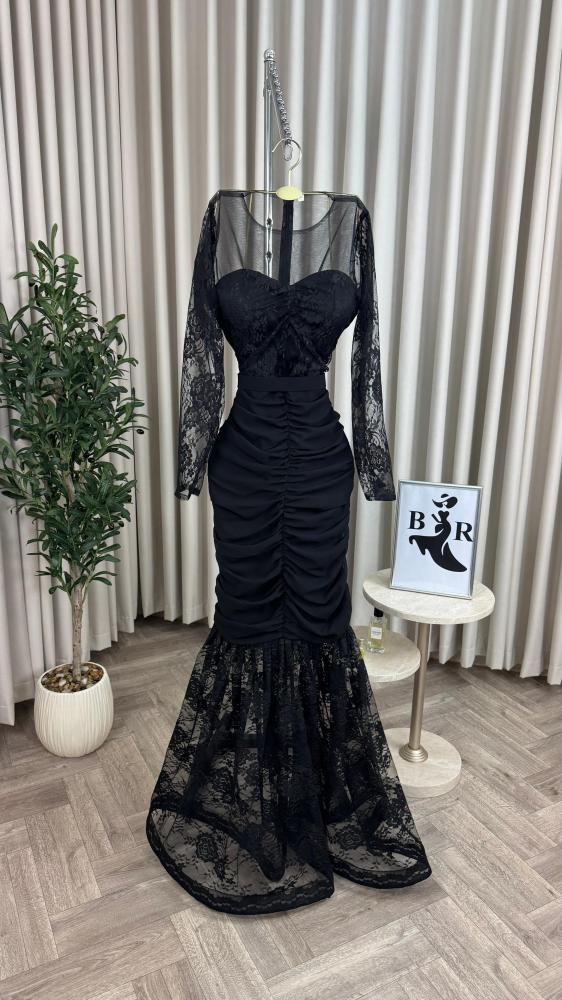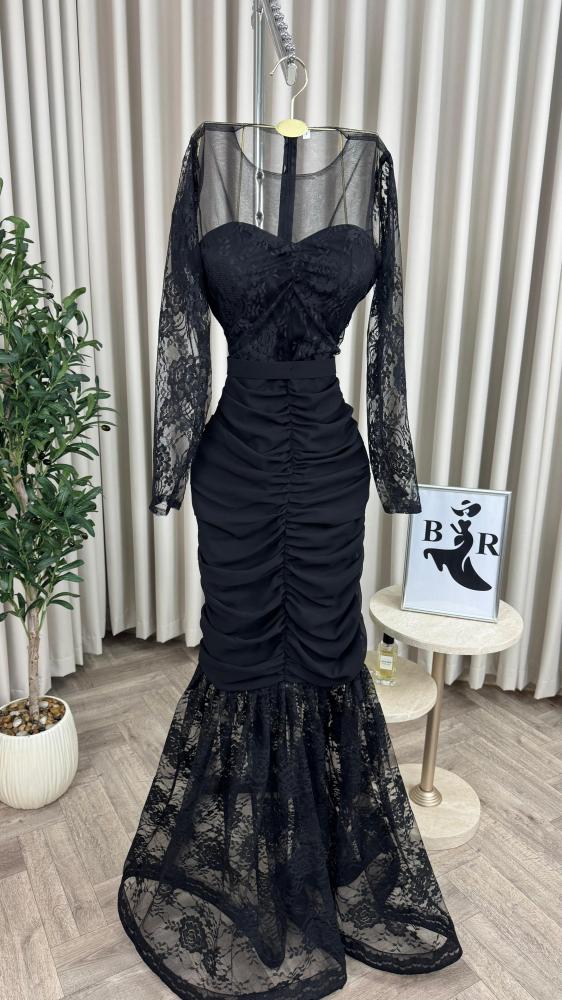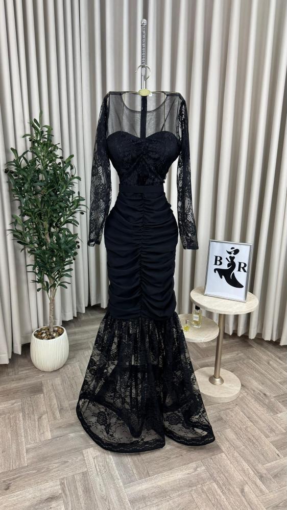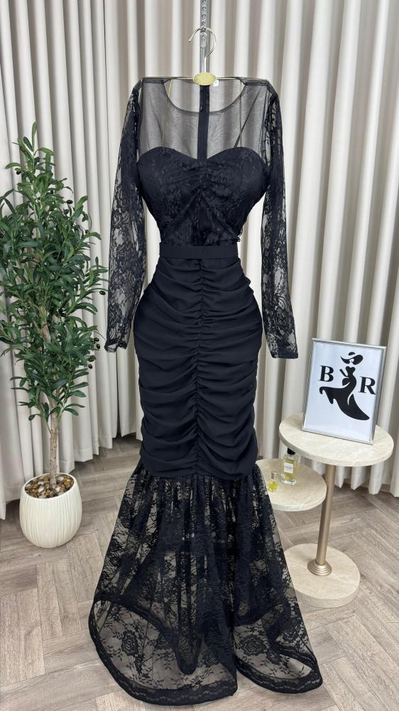 فستان سهره اللون اسود دانتيل مع شيفون جورجيت من متجر جوهره BR