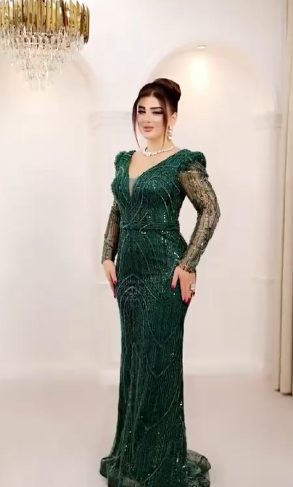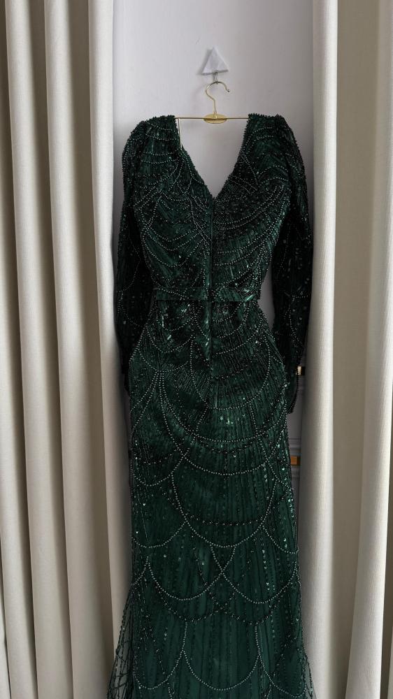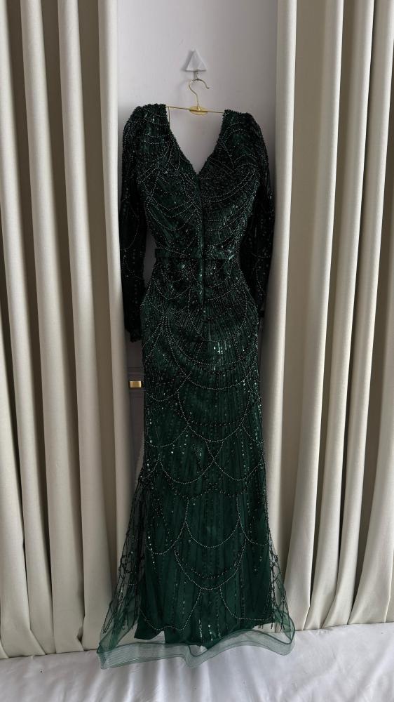 فستان سهره اللون اخضر بترولي خرز من متجر جوهره MN