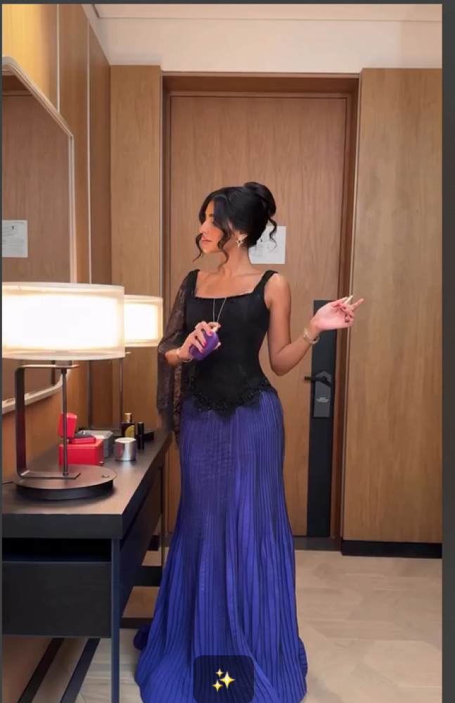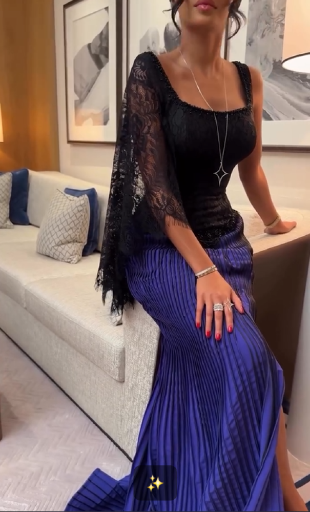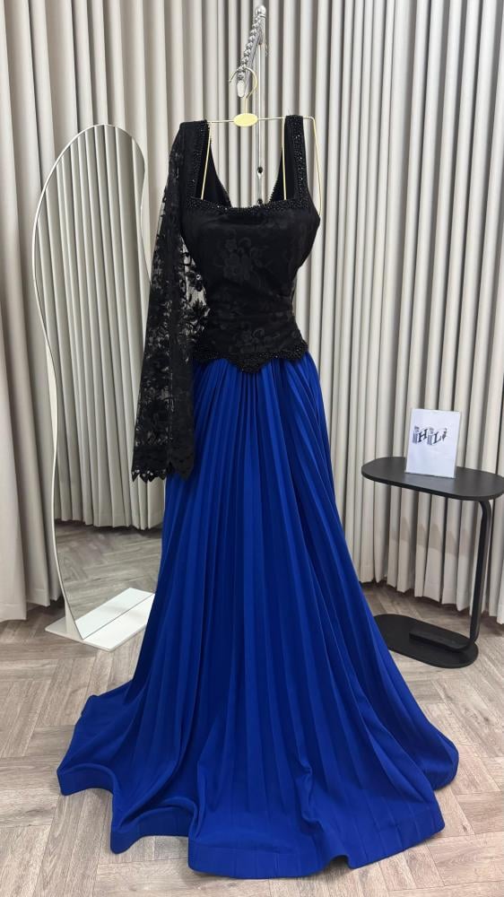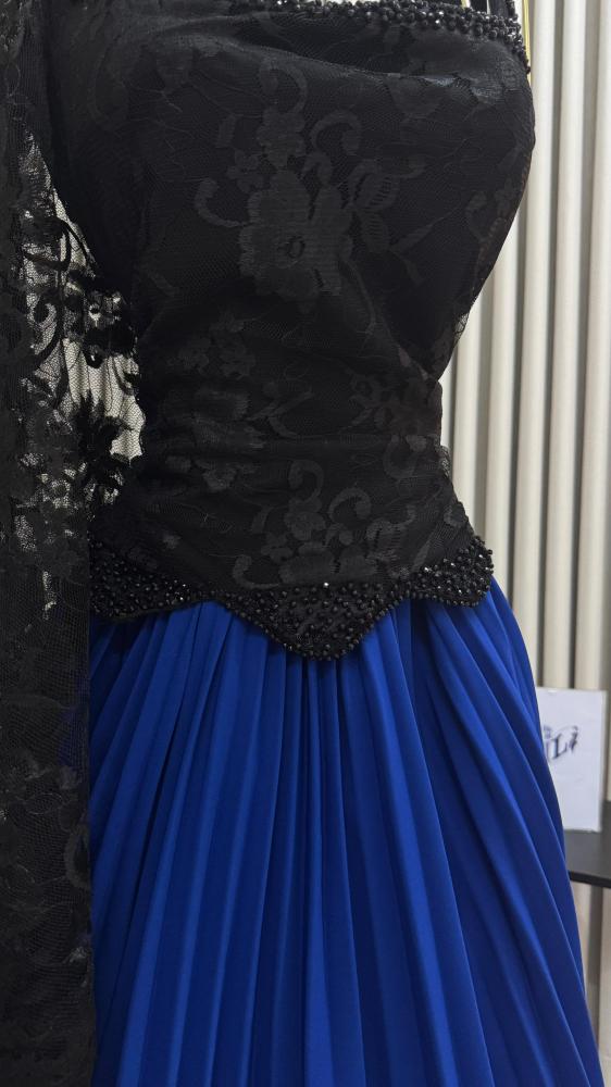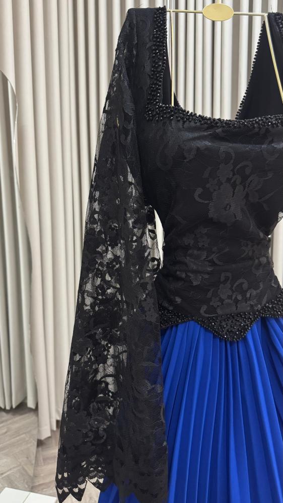 فستان سهره اللون اسودعلى نيلي لكرا دانتيل من متجر جوهره HL
