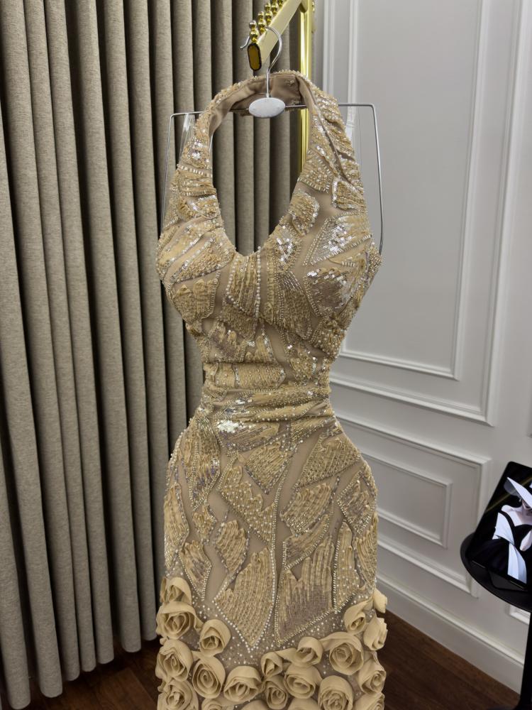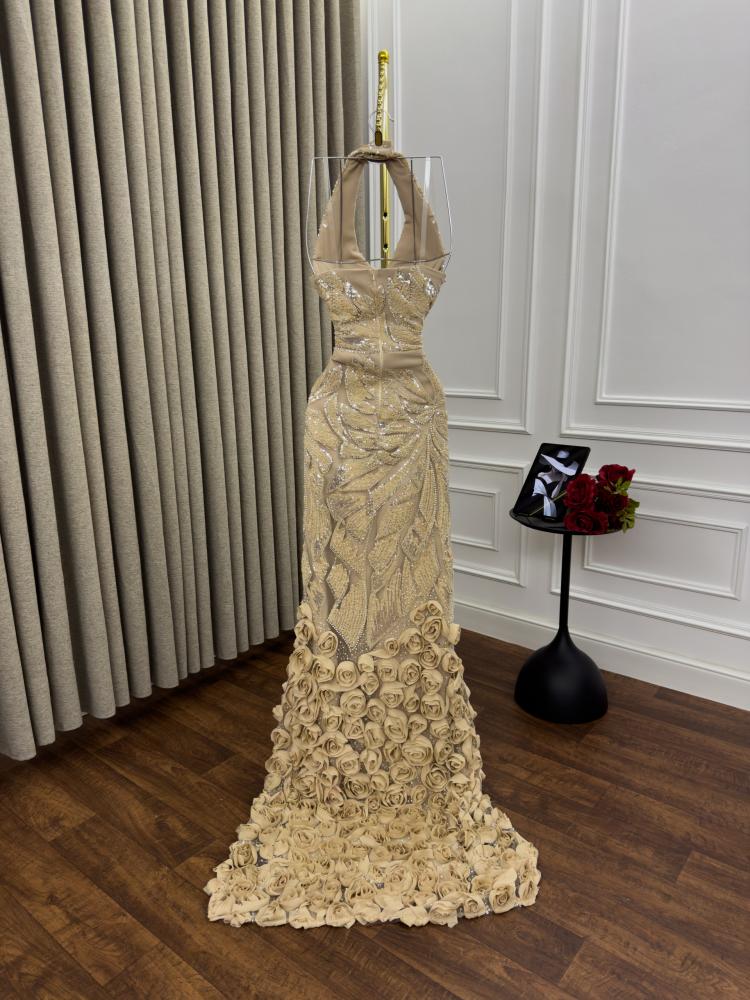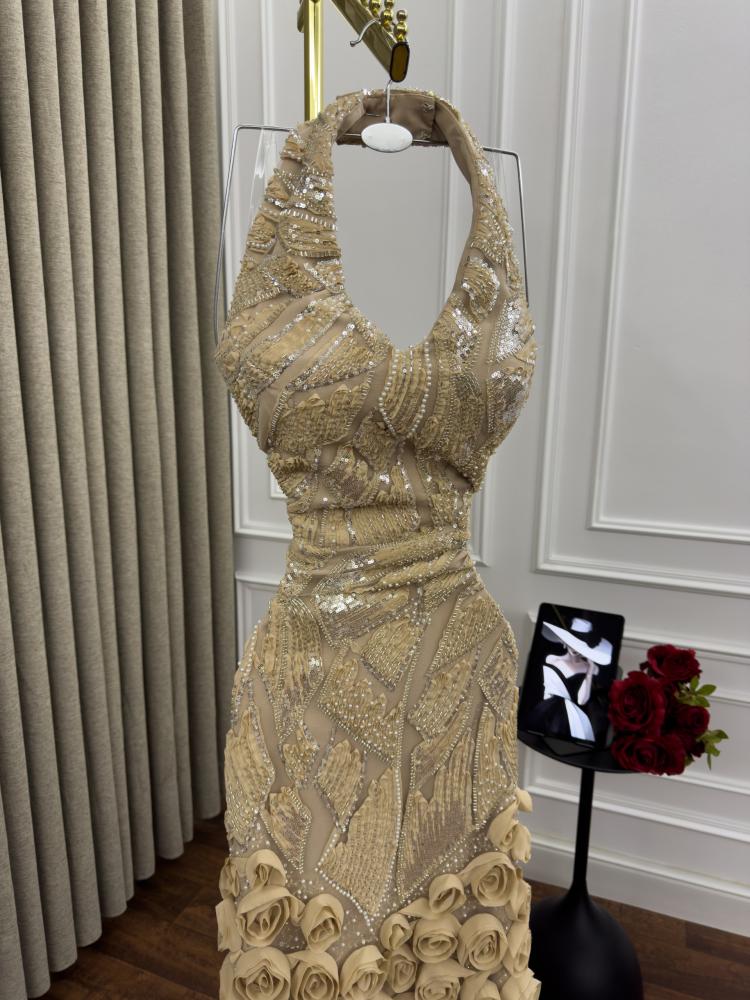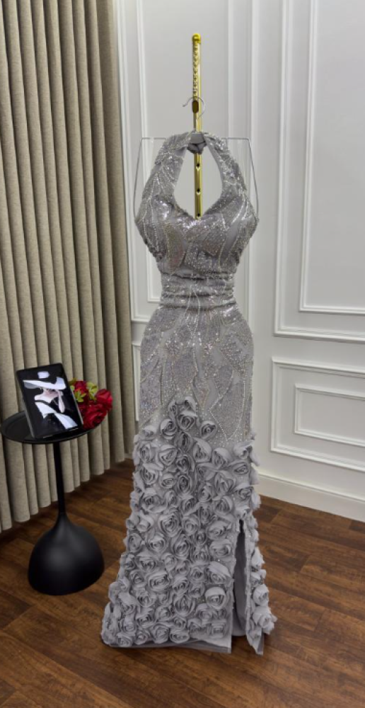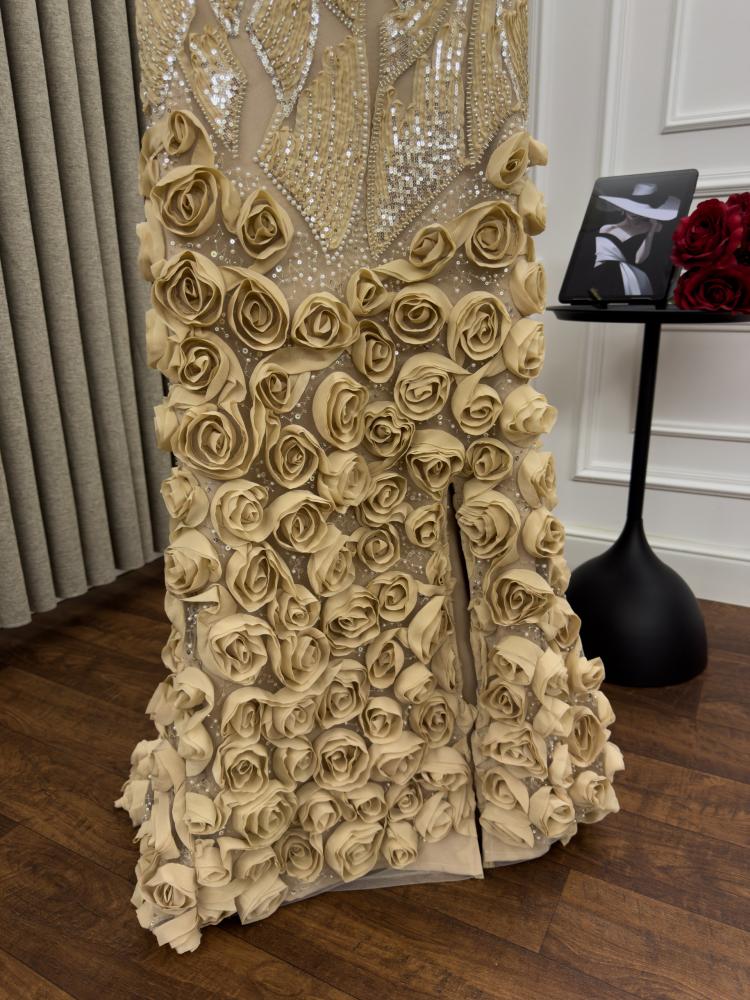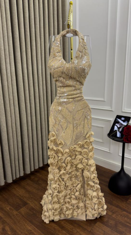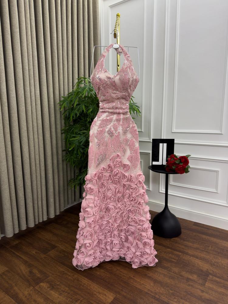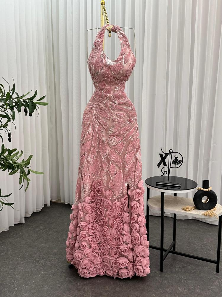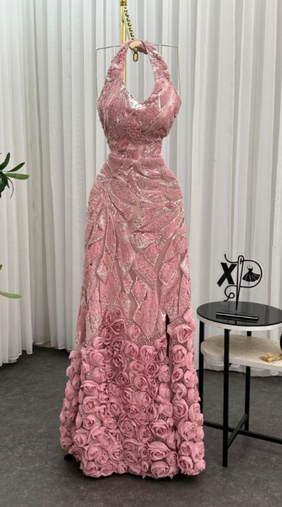 فستان سهره اللون وردي بيج واصفر قماش شك سهره مبطن تفته من متجر جوهره JR X LA MN