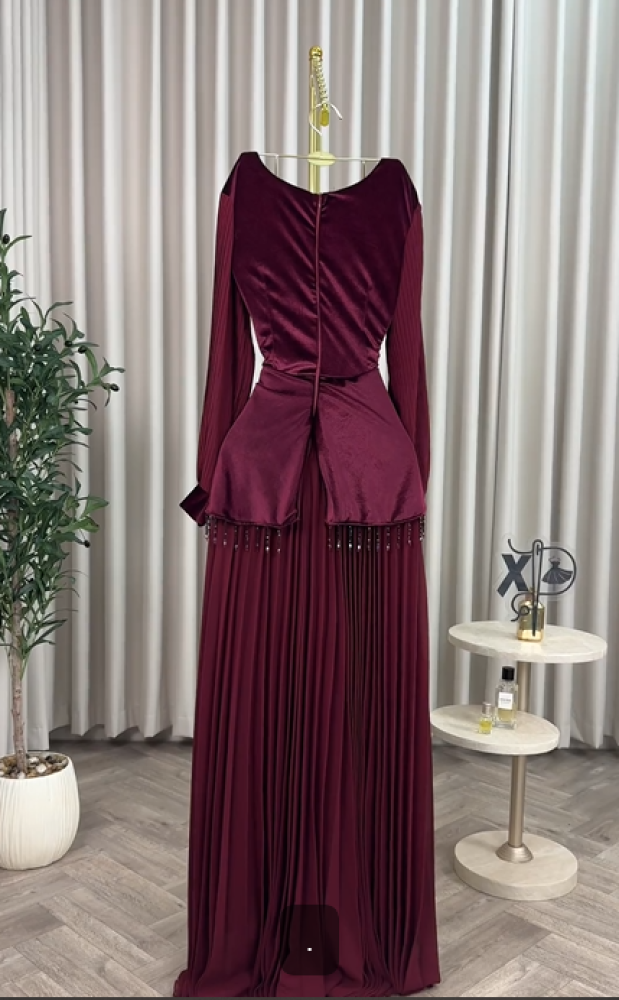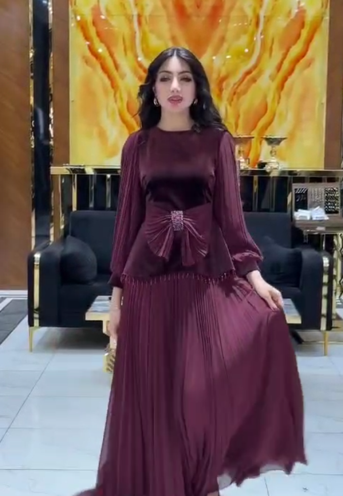 فستان سهره اللون برغندي مخمل على شيفون من متجر جوهره X