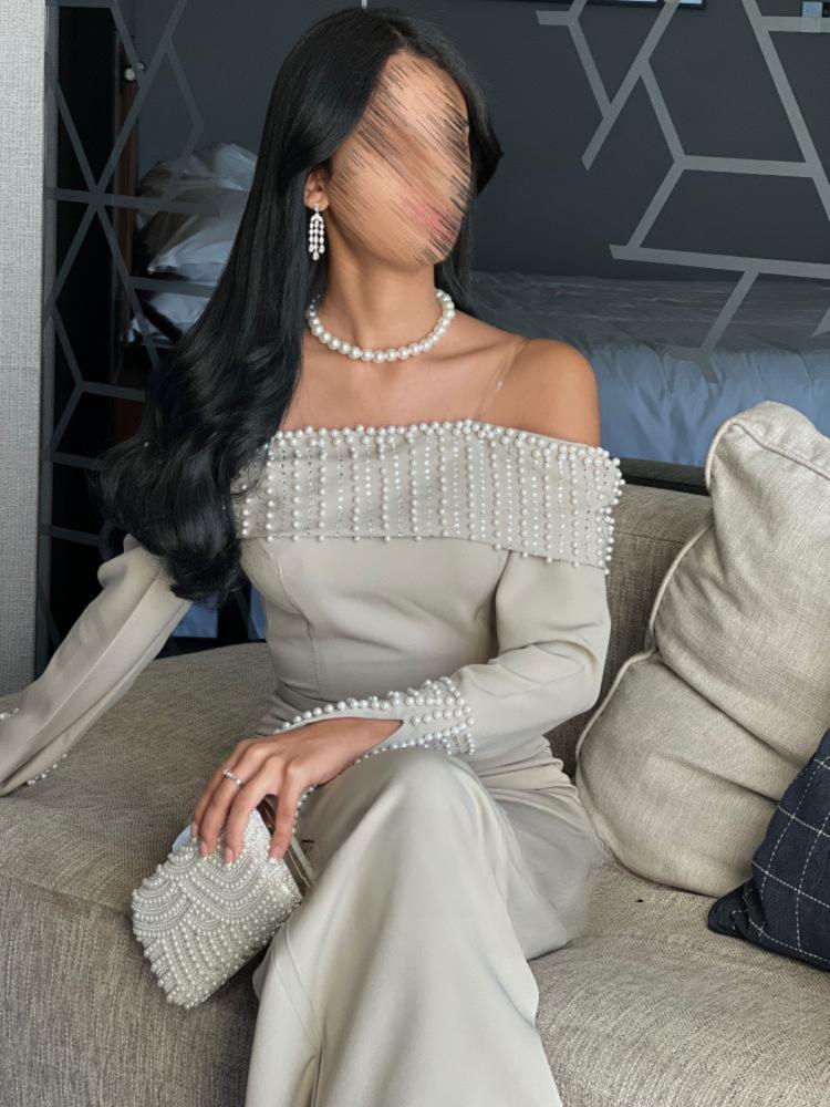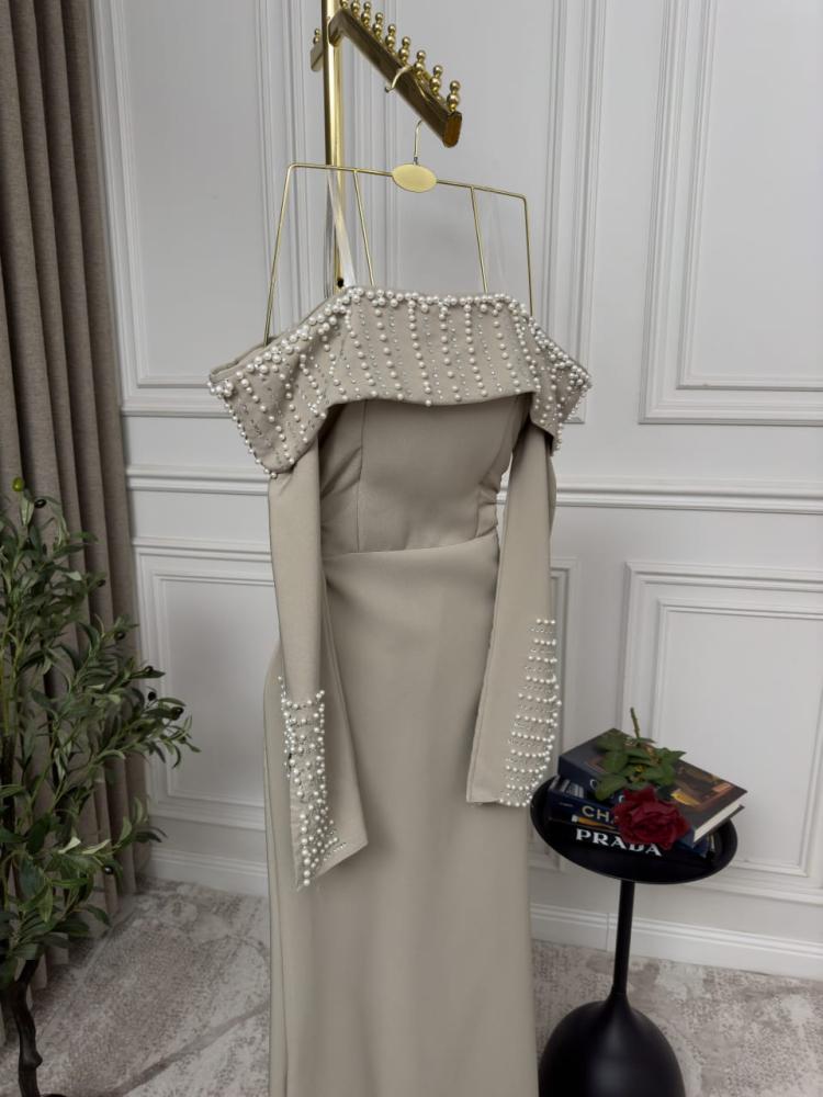 فستان بيج اوف شولدر اكمام طويله باربي اصلي درجه اولى تطريز يدوي لول