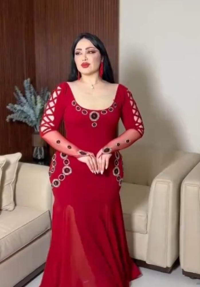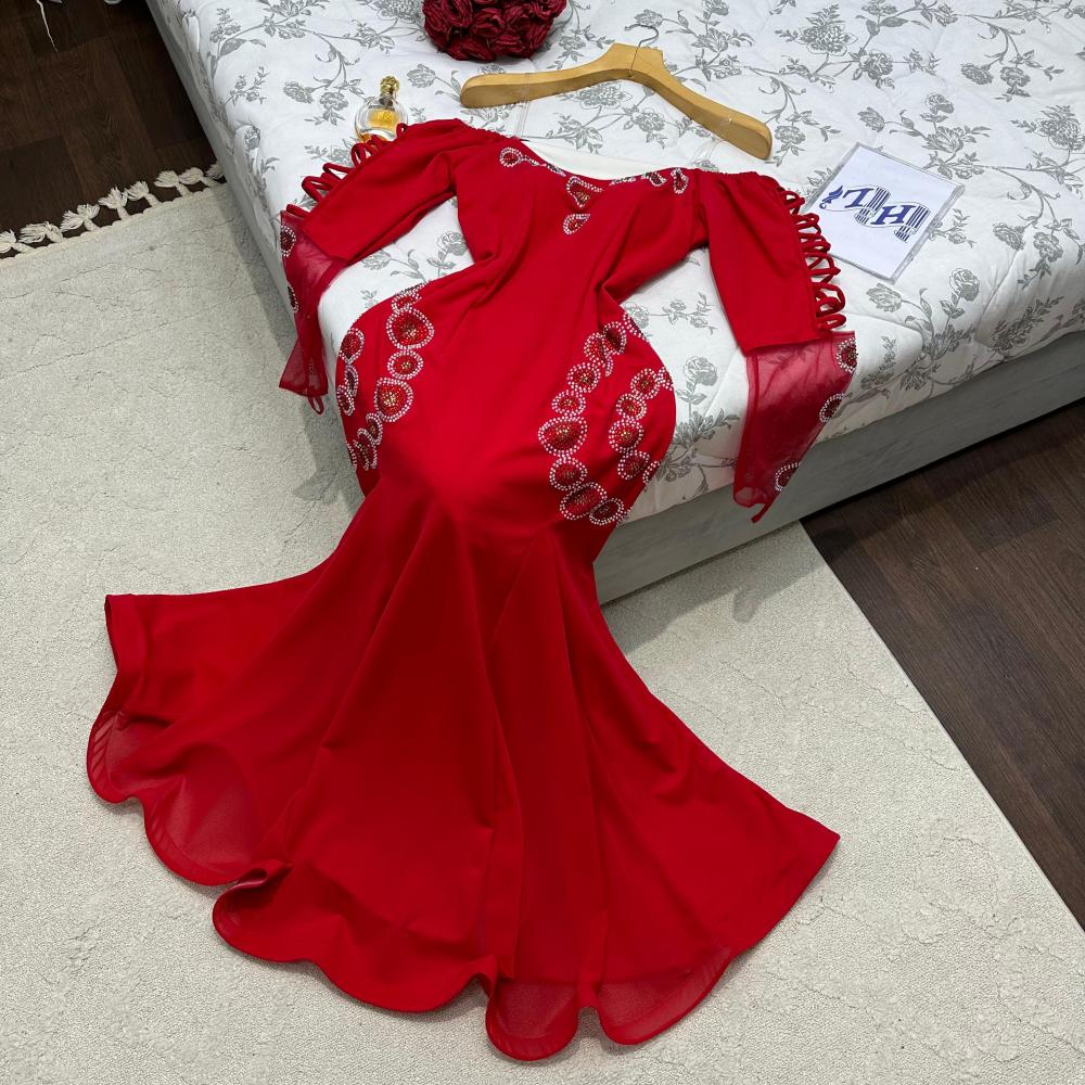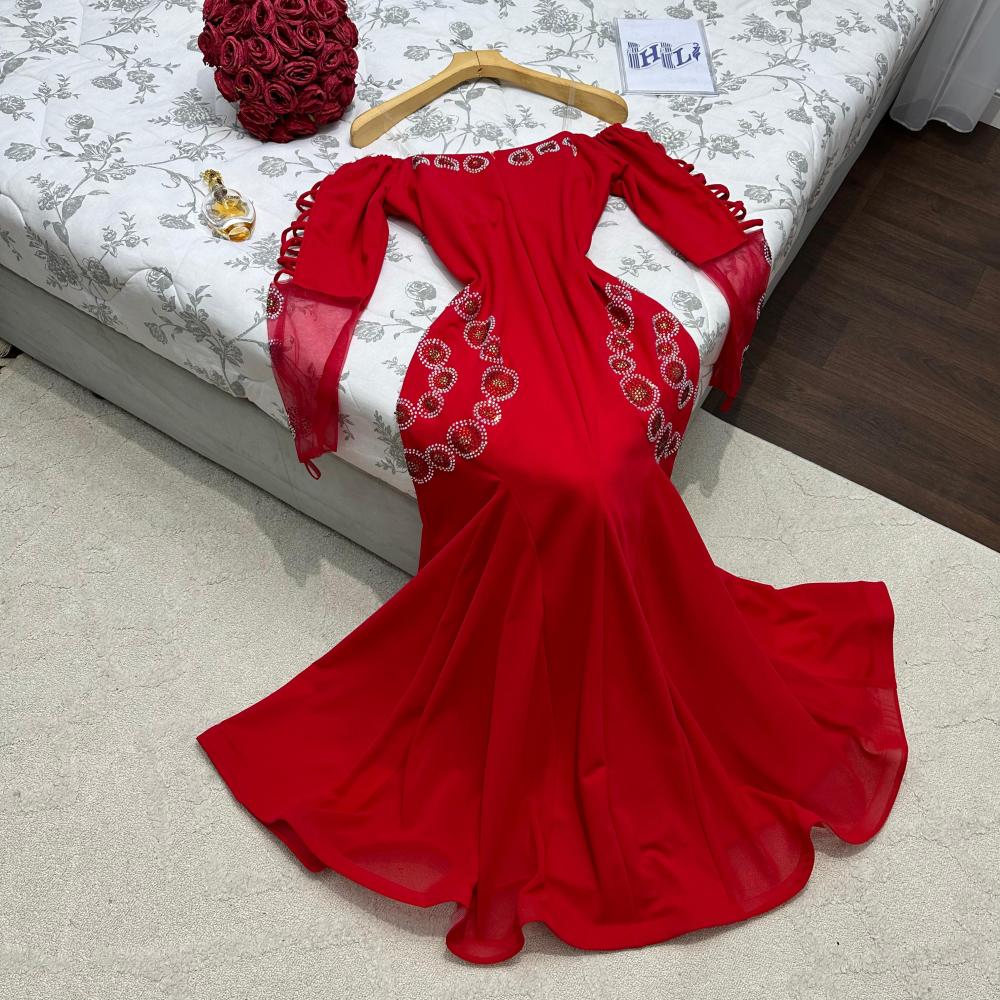 فستان ناعم الخـامة // *كريب استرتش + فصوص الاصلي