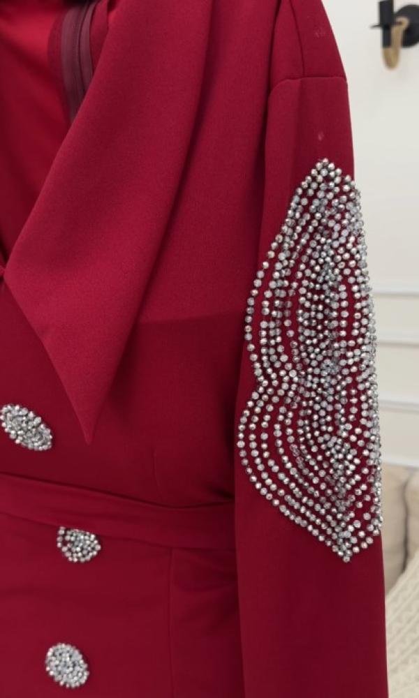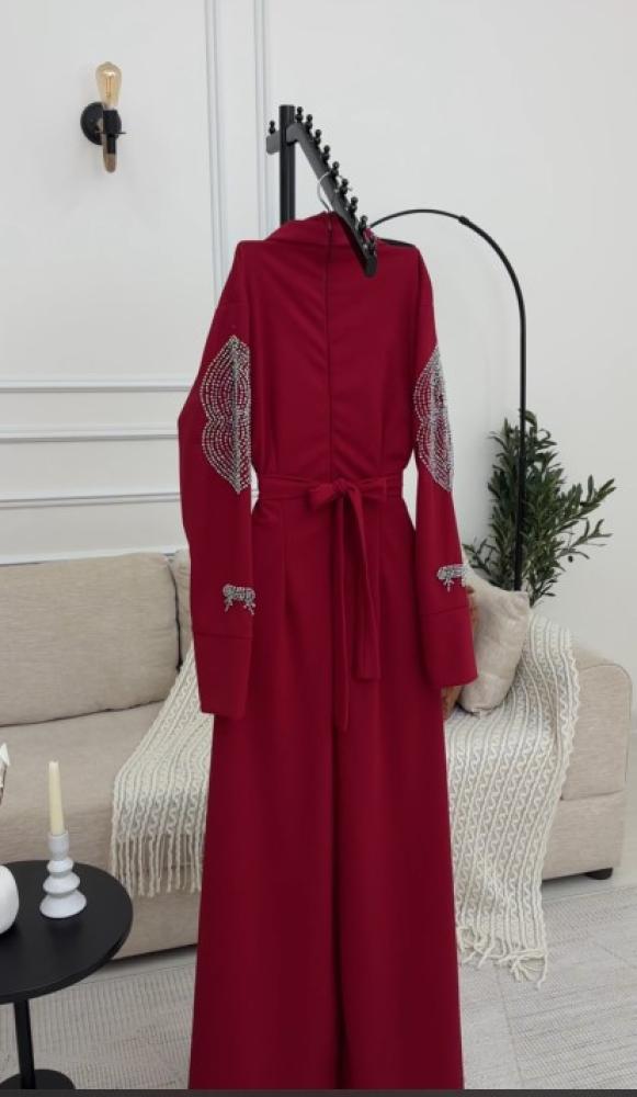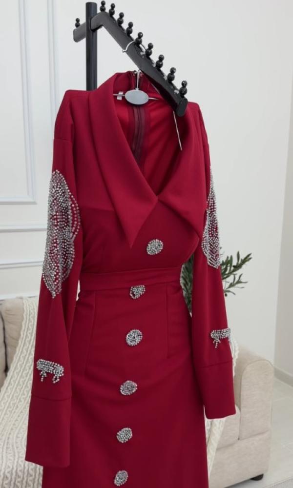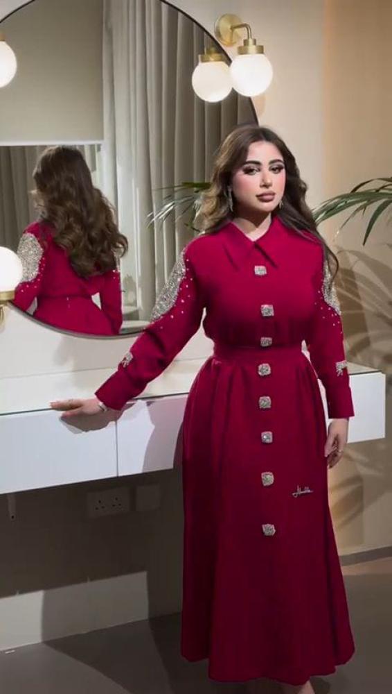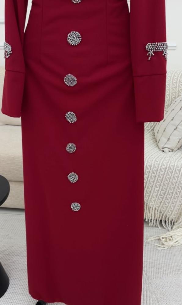 فستان ناعم اللون احمر الخامه ليكرا تطريز يدوي