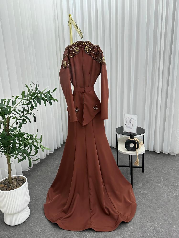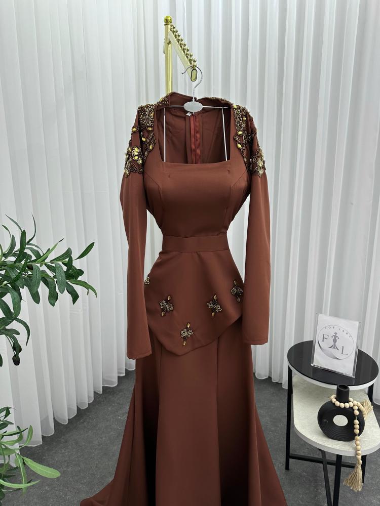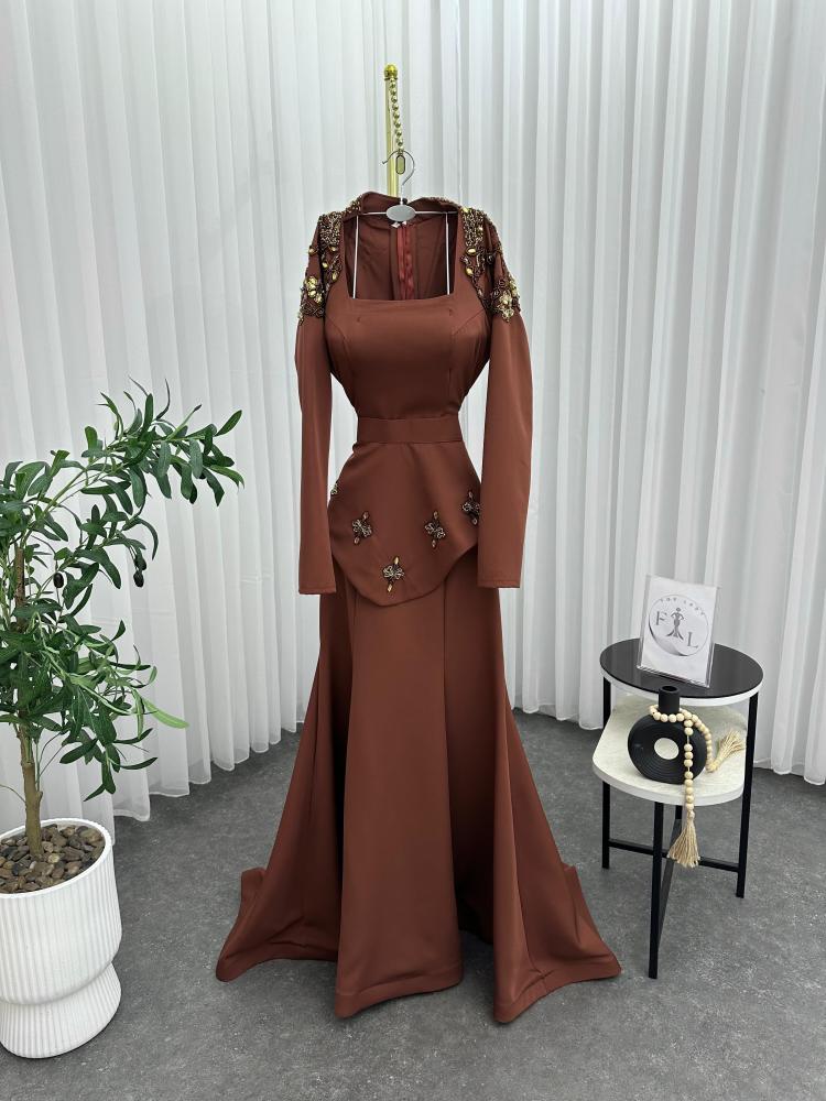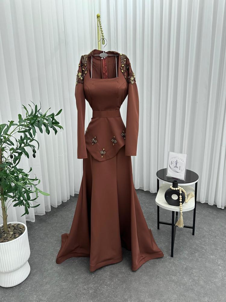 فستان اللون بني الخامه باربي تطريز يدوي FR