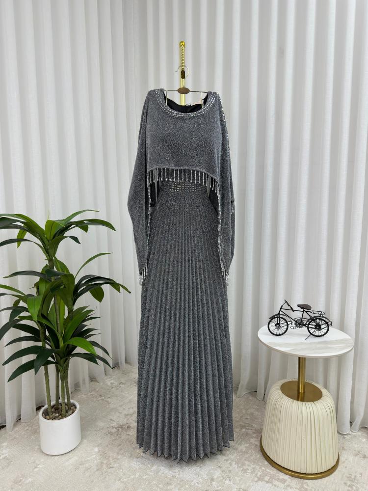 فــسـتان الالوان لحمي رصاصي تفني القماش شيفون لامع مطرز من متجر جوهره AR