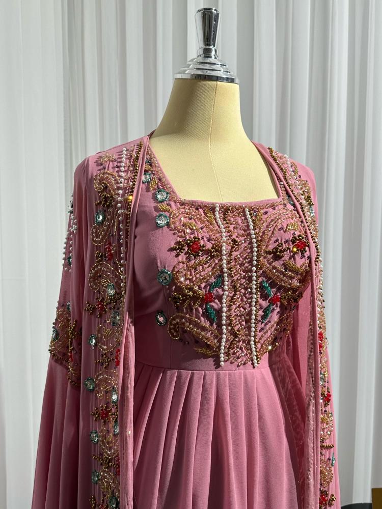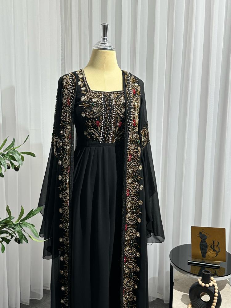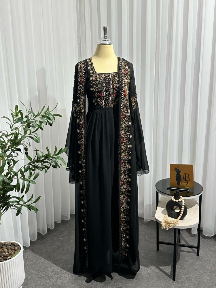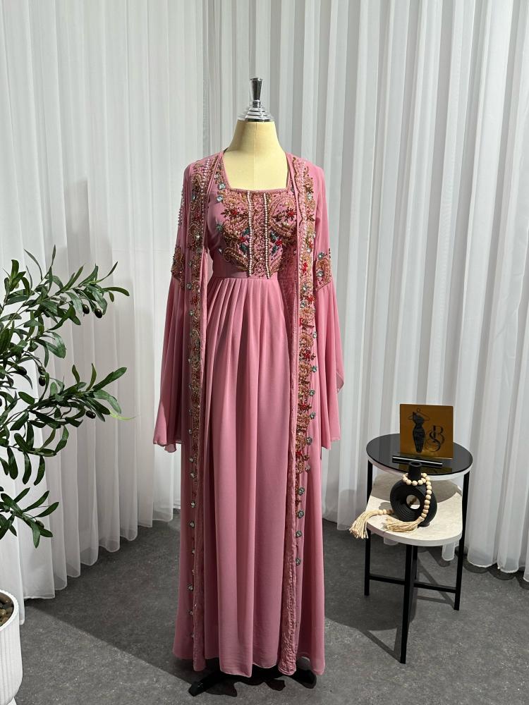 جلابيه فخمه مكون من قطعتين شيفون جورجيت تطريز راقي