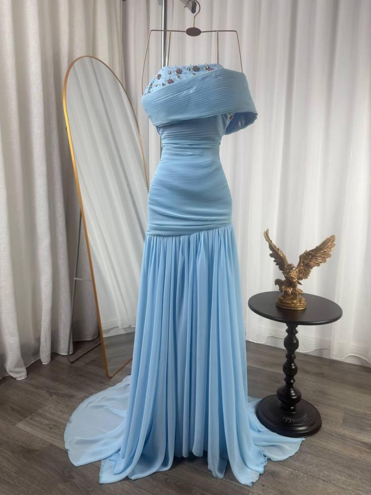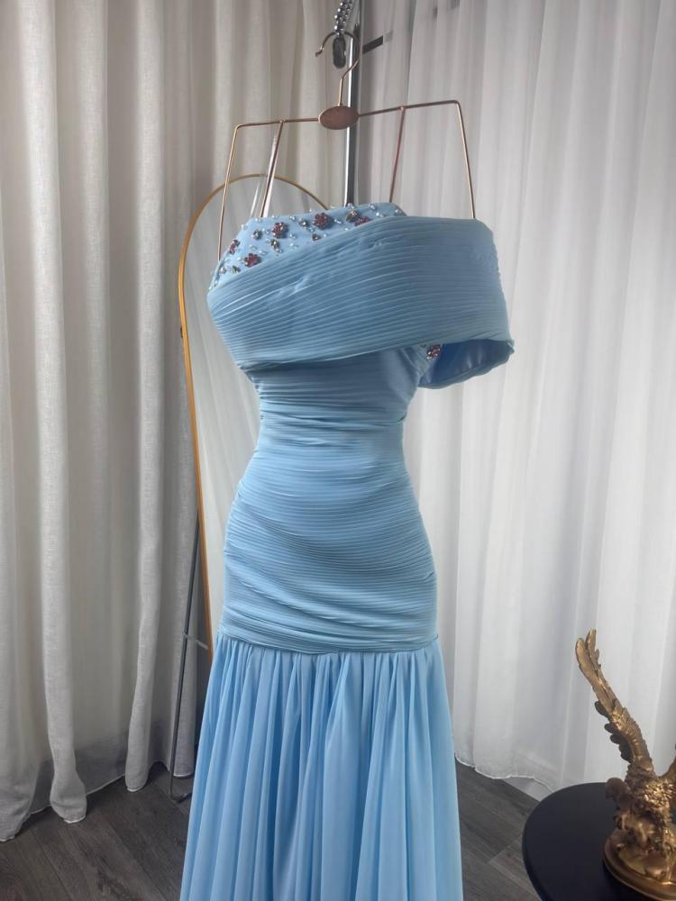 فستان سهره اللون سماوي جورجيت سماوي بطانه تطريز يدوي من متجر جوهره QN