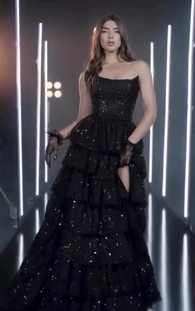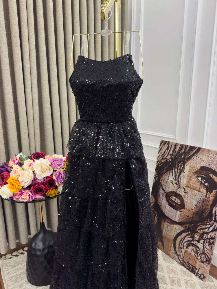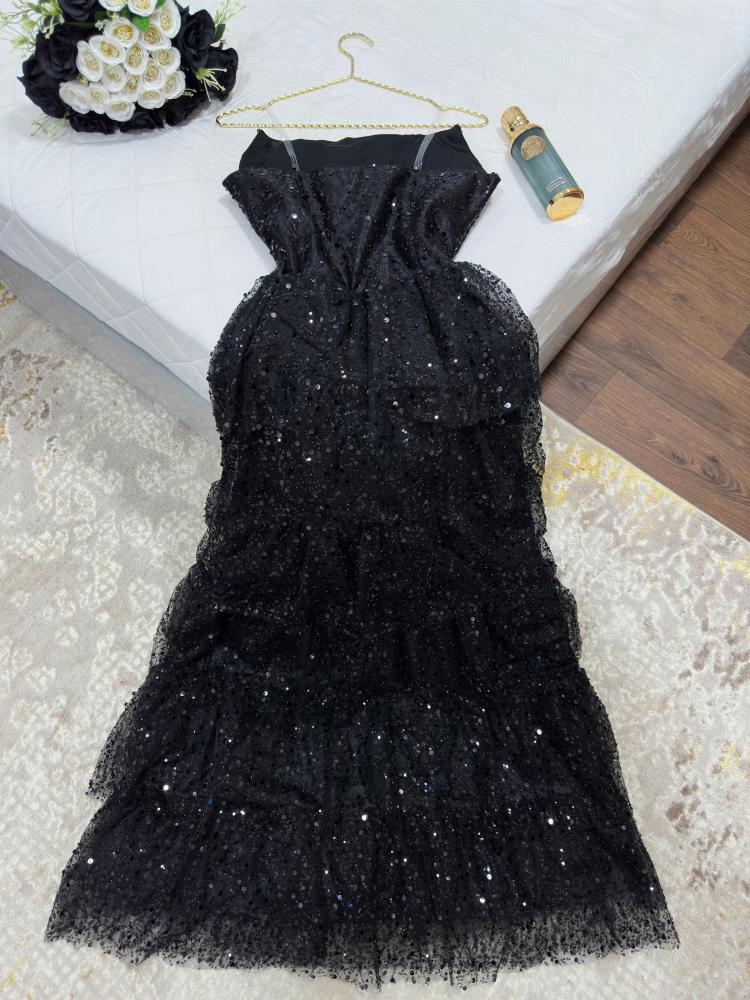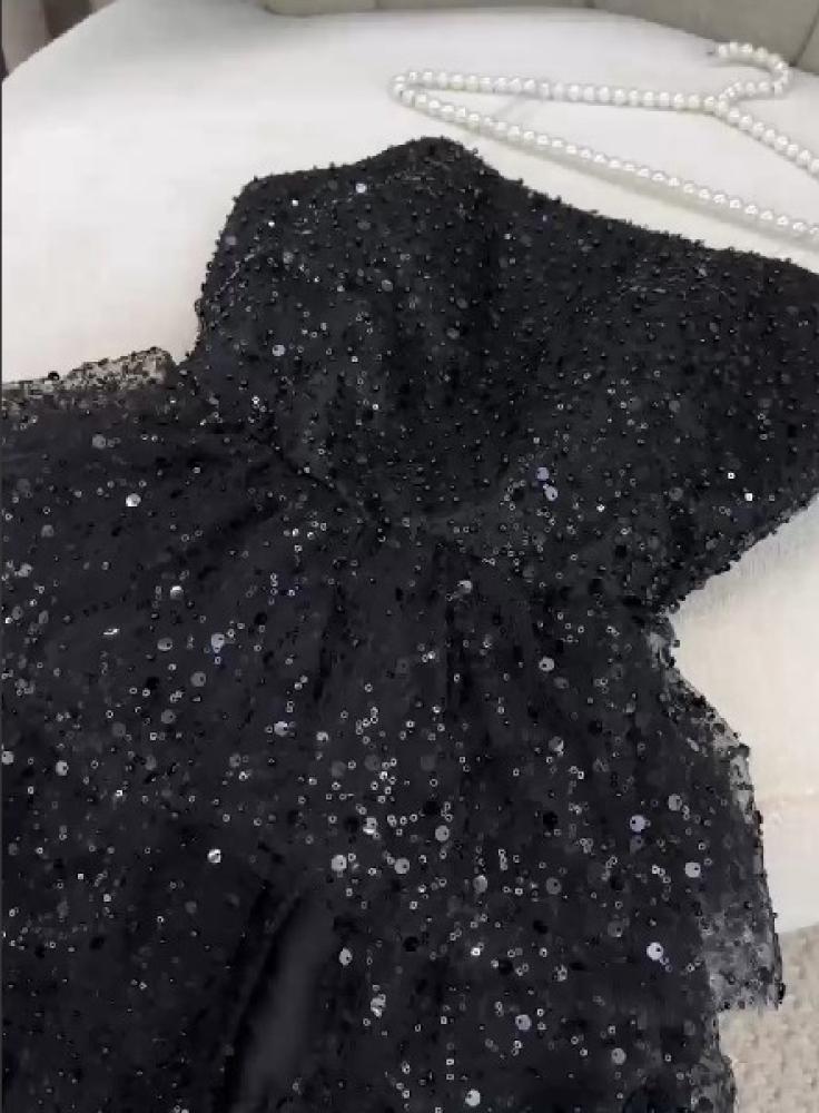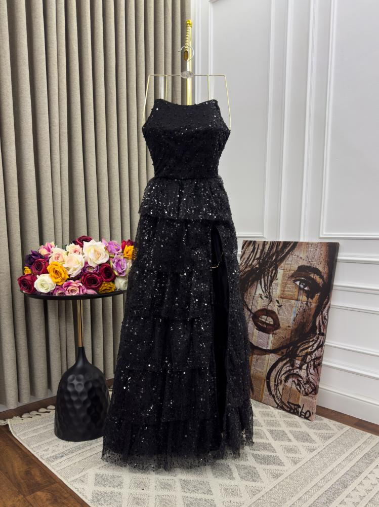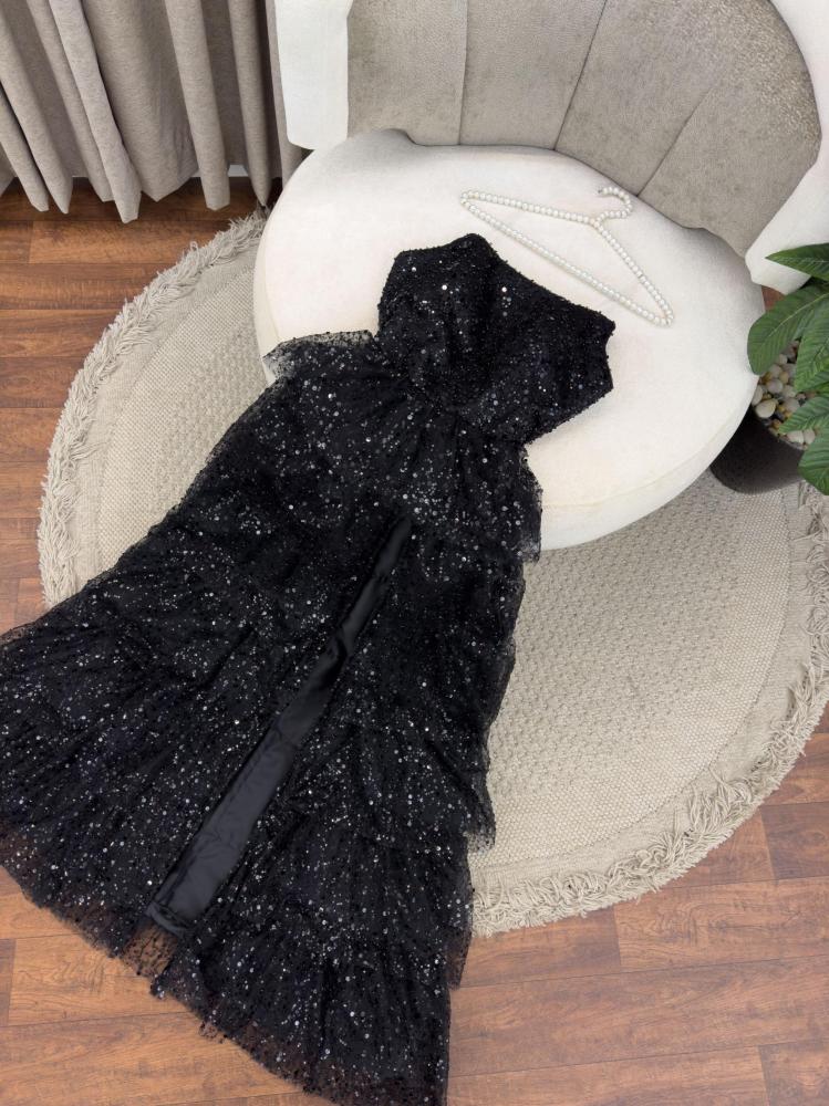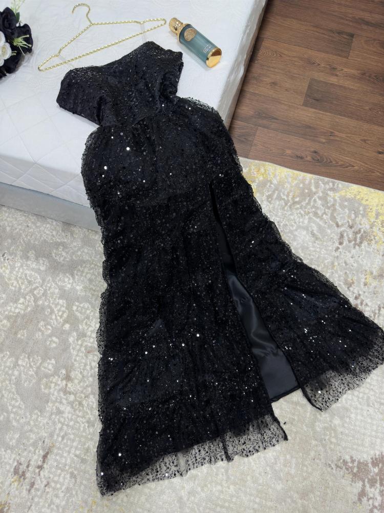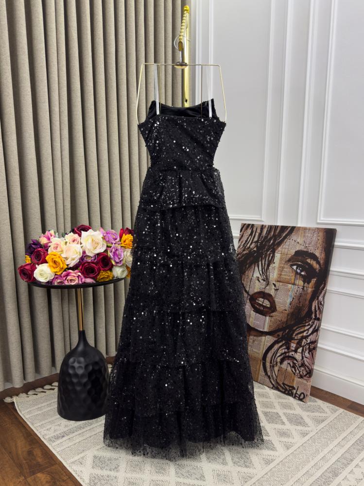 فستان سهره اسود كشكشه طبقات خامه كردانه ولول شغل يد