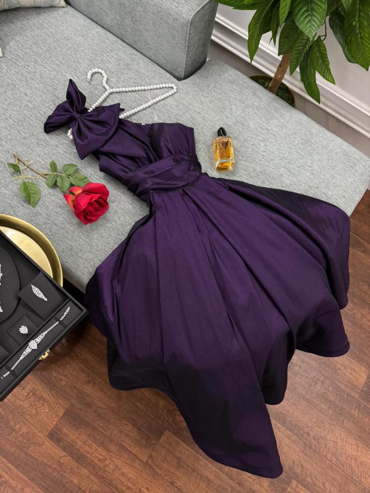 وصف المنتجتصاميم : فستان سهره ناعماللون : بنفسجخط العنق : اوف شولدرمائلنوع القماش : شانطونالوصف : فستان بحماله واحده وفيونكه على الكتف فستان كلوش ميدي المقاسات المتوفره :S – M – L- XL