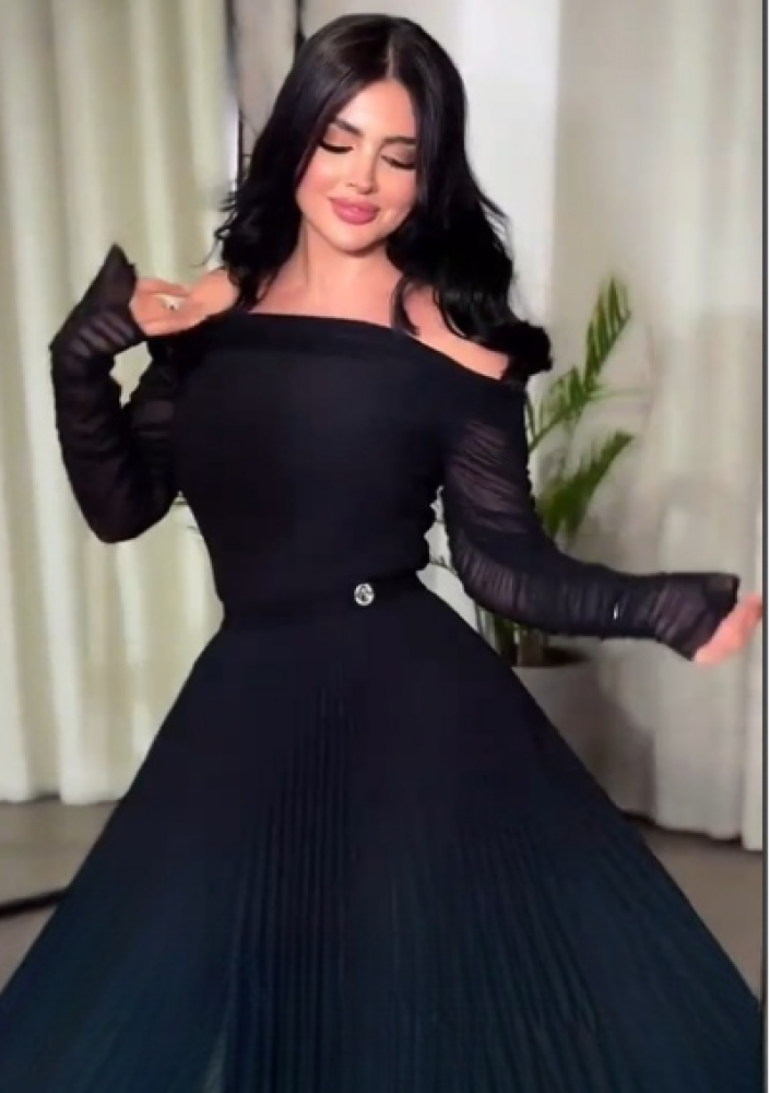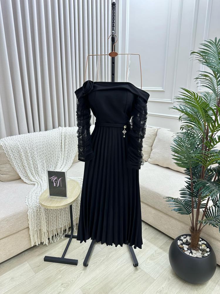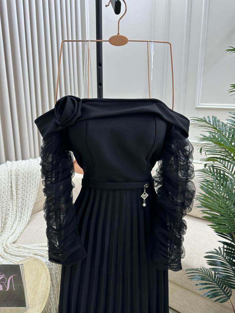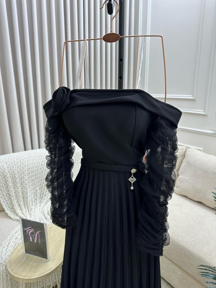 فستان سهره اللون اسود القماش باربي بوليسيه+تل تيواني MN
