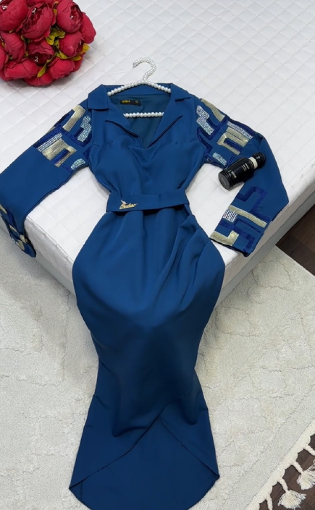 فستان اللون ازرق كحلي خامة باربي من متجر جوهره HR