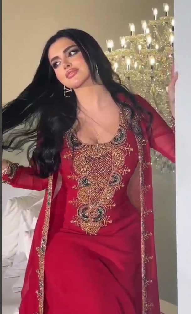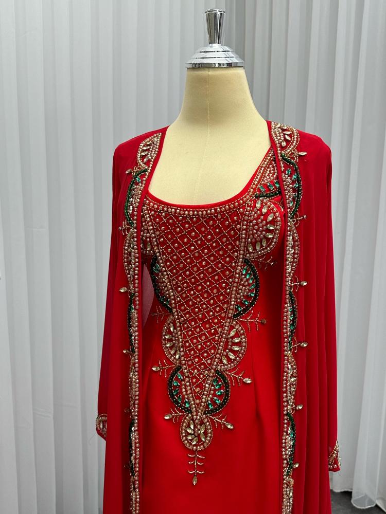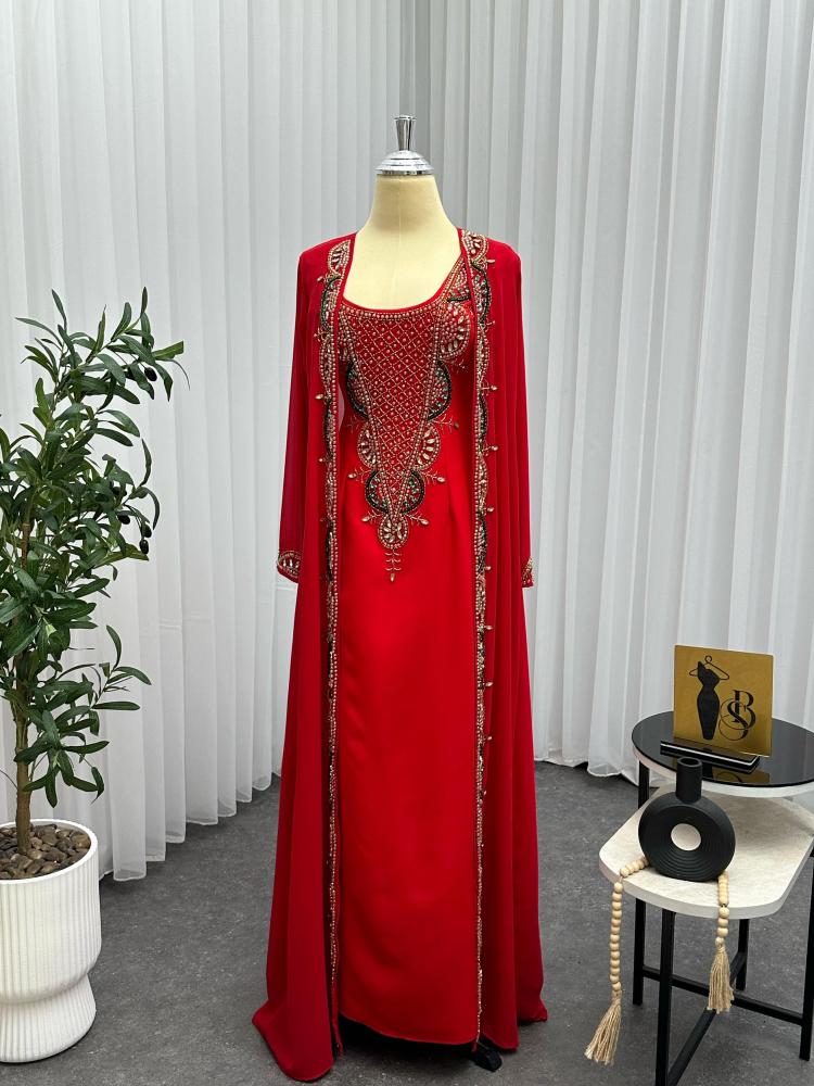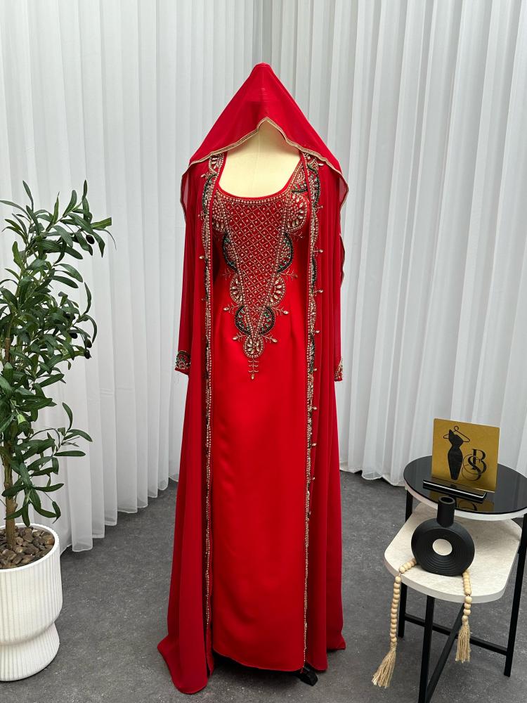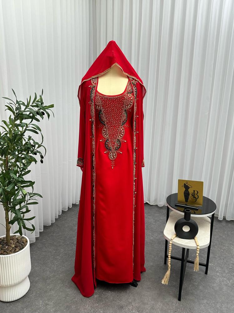 جلابية اللون احمر الخامه: باربي جورجيت تطريز يدوي راقي على القماش من متجر جوهره BS