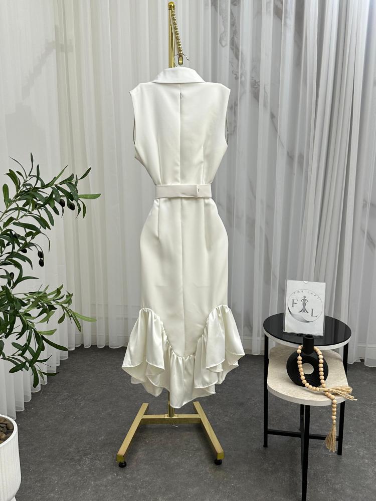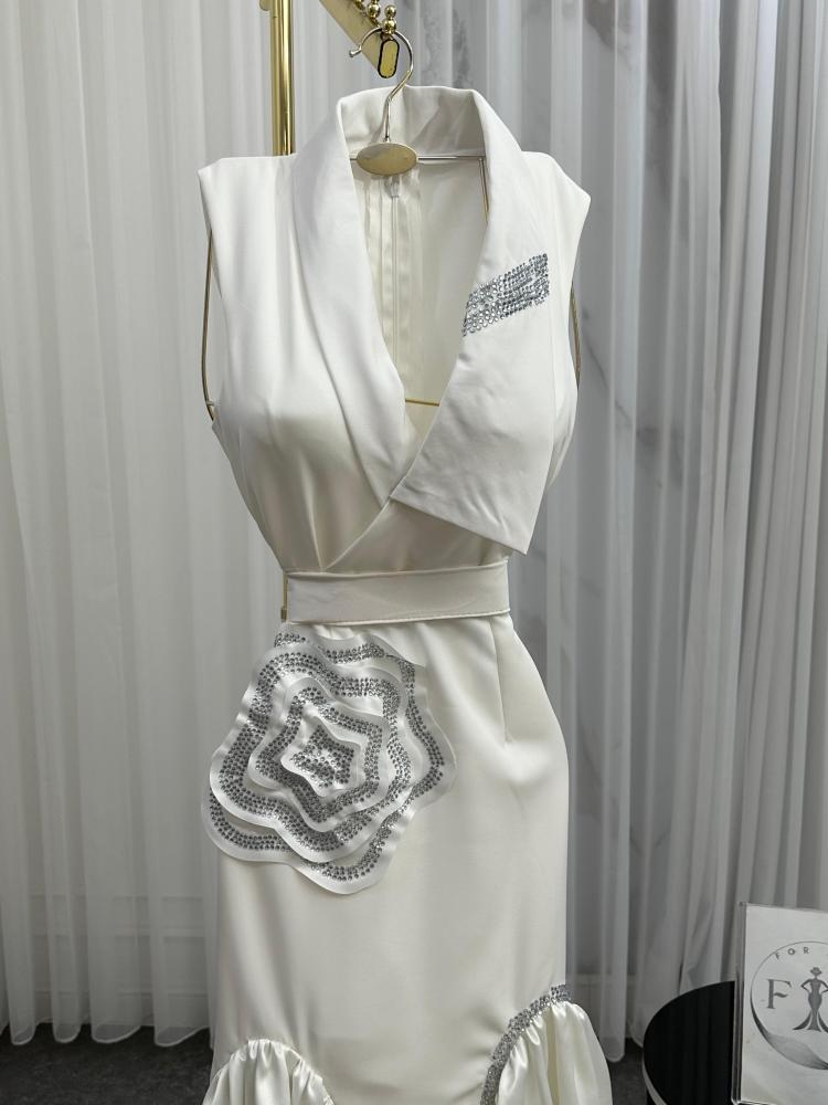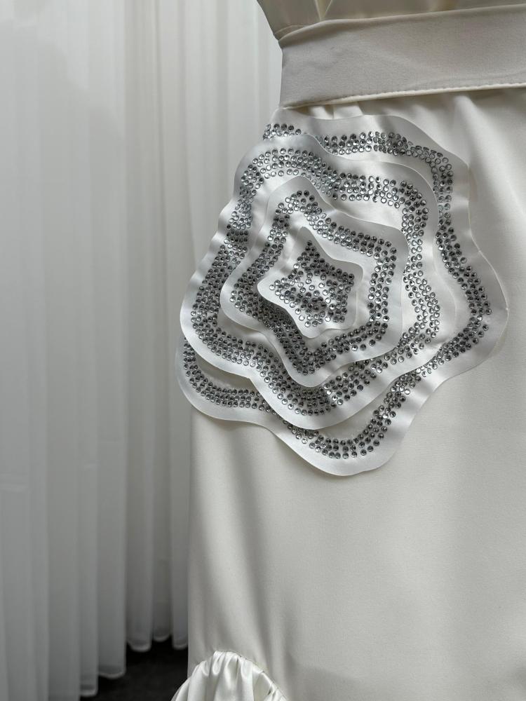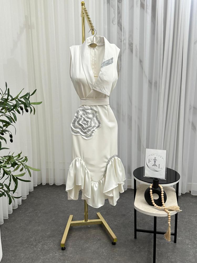 فستان ابيض قصير بكشكشه من الاسفل مزين بالكريستال الخامه باربي من متجر جوهره FL